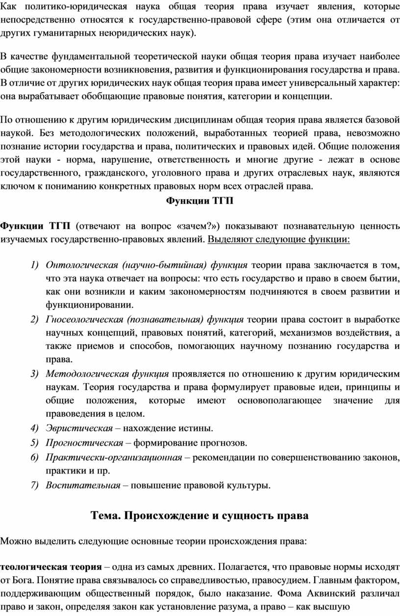 1) Онтологическая (научно-бытийная) функция теории права заключается в том, что эта наука отвечает на вопросы: что есть государство и право в своем бытии, как они возникли и каким закономерностям подчиняются в своем развитии и функционировании.