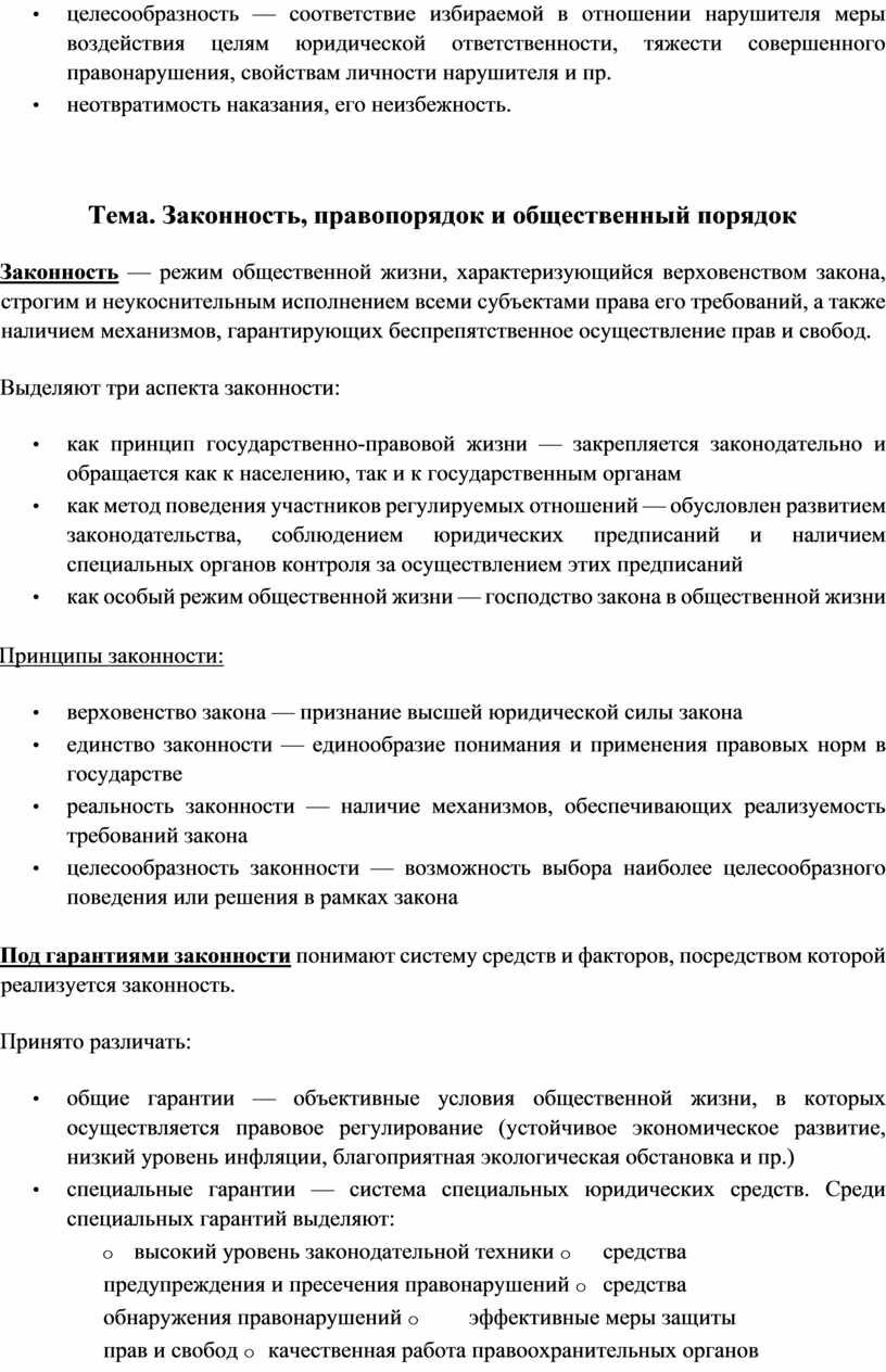 • целесообразность законности — возможность выбора наиболее целесообразного поведения или решения в рамках закона
