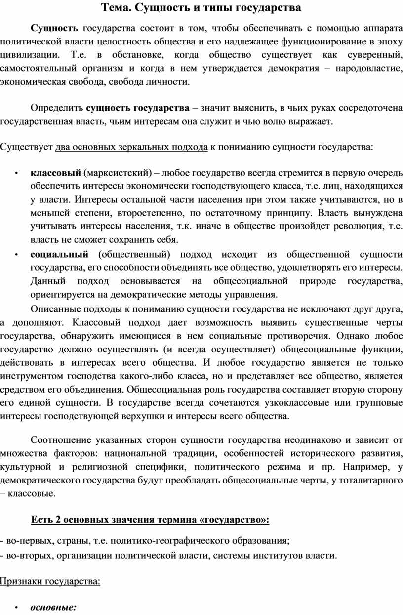 Определить сущность государства – значит выяснить, в чьих руках сосредоточена государственная власть, чьим интересам она служит и чью волю выражает.