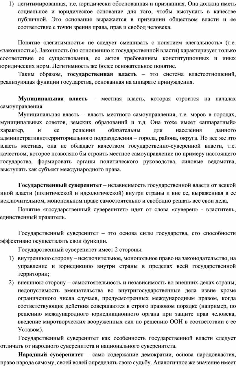4) легитимированная, т.е. юридически обоснованная и признанная. Она должна иметь социальное и юридическое основание для того, чтобы выступать в качестве публичной. Это основание выражается в признании обществом власти и ее соответствие с точки зрения права, прав и свобод человека.