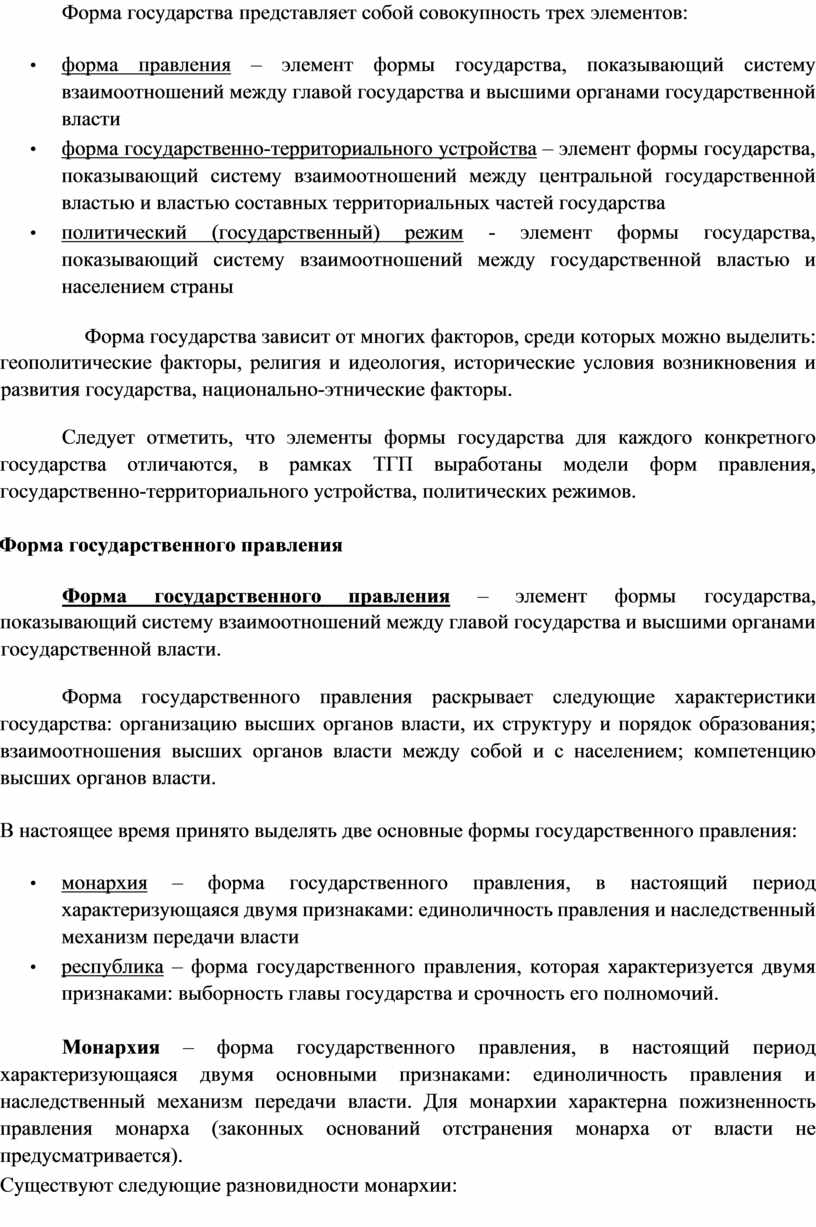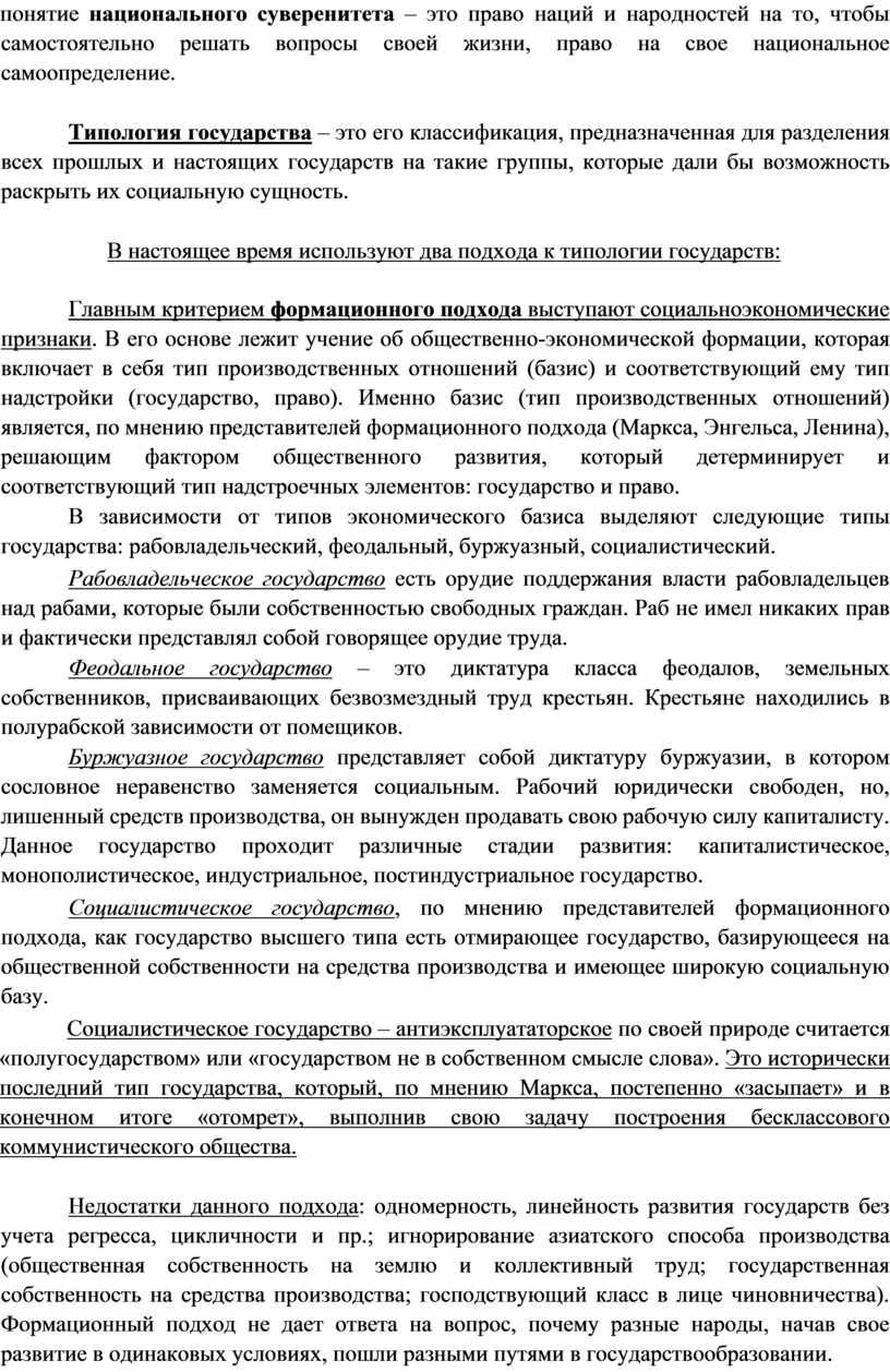 Государство – это политико-территориальная суверенная организация публичной власти, располагающая специальным аппаратом в целях осуществления управленческообеспечительной, охранительной функций и способная делать свои веления обязательными для населения всей страны.