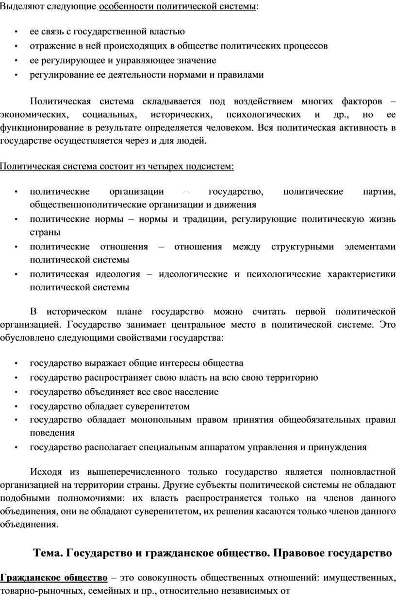 Тема. Государство в политической системе общества