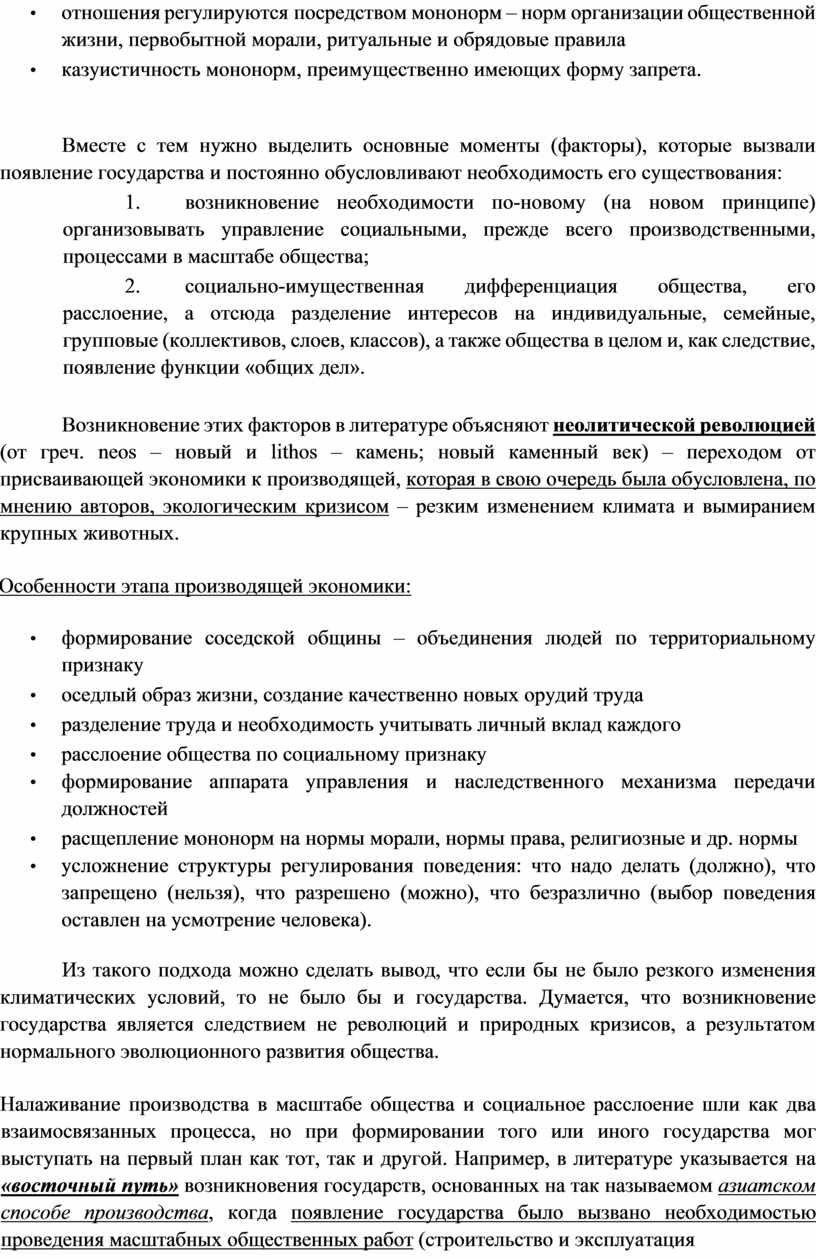 Вместе с тем нужно выделить основные моменты (факторы), которые вызвали появление государства и постоянно обусловливают необходимость его существования: