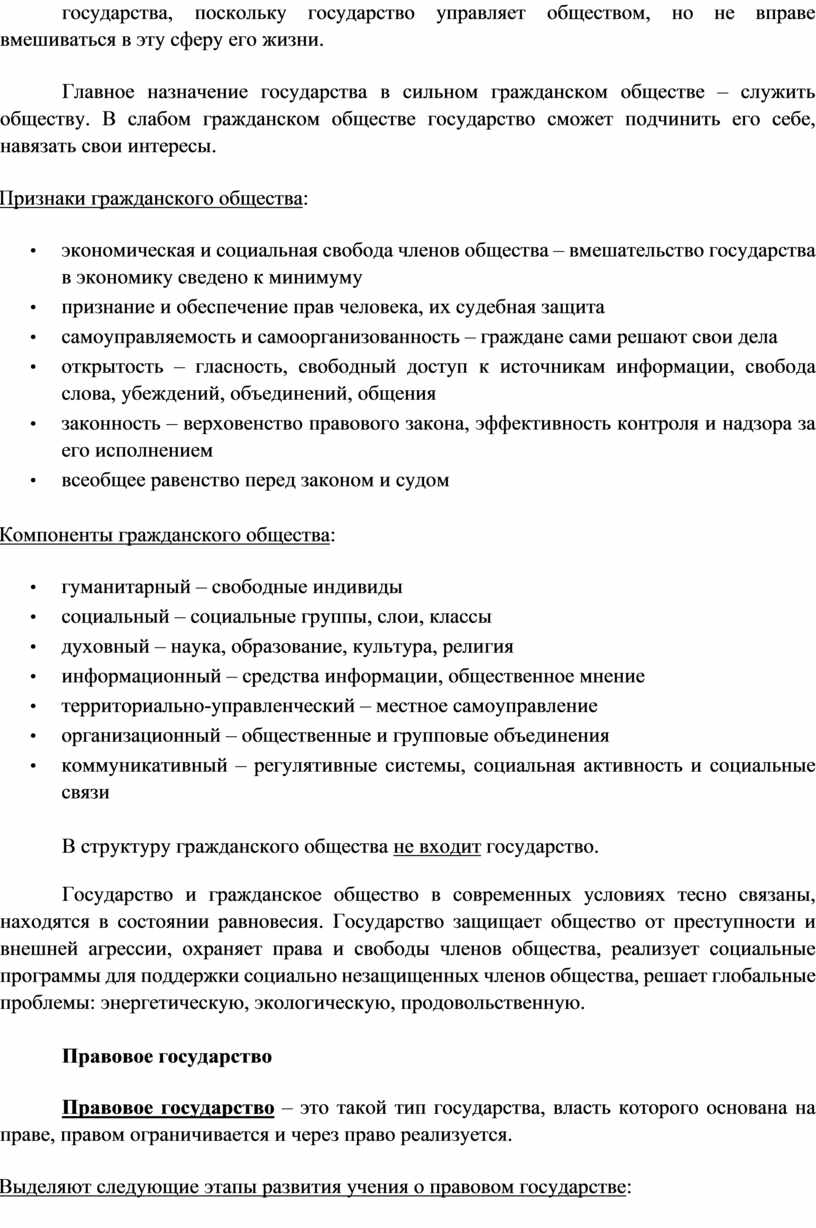 Тема. Государство и гражданское общество. Правовое государство