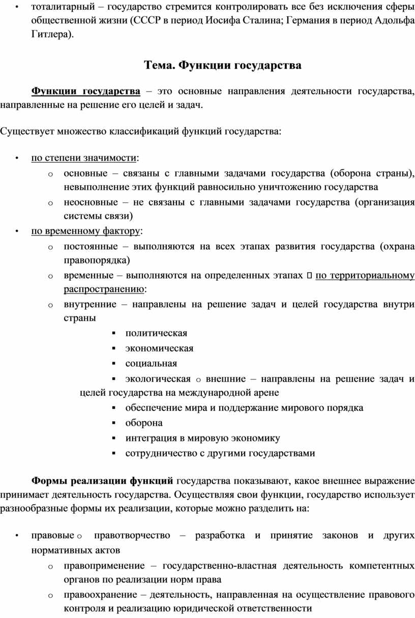 Соотношение указанных сторон сущности государства неодинаково и зависит от множества факторов: национальной традиции, особенностей исторического развития, культурной и религиозной специфики, политического режима и пр. Например, у демократического государства будут преобладать общесоциальные черты, у тоталитарного – классовые.