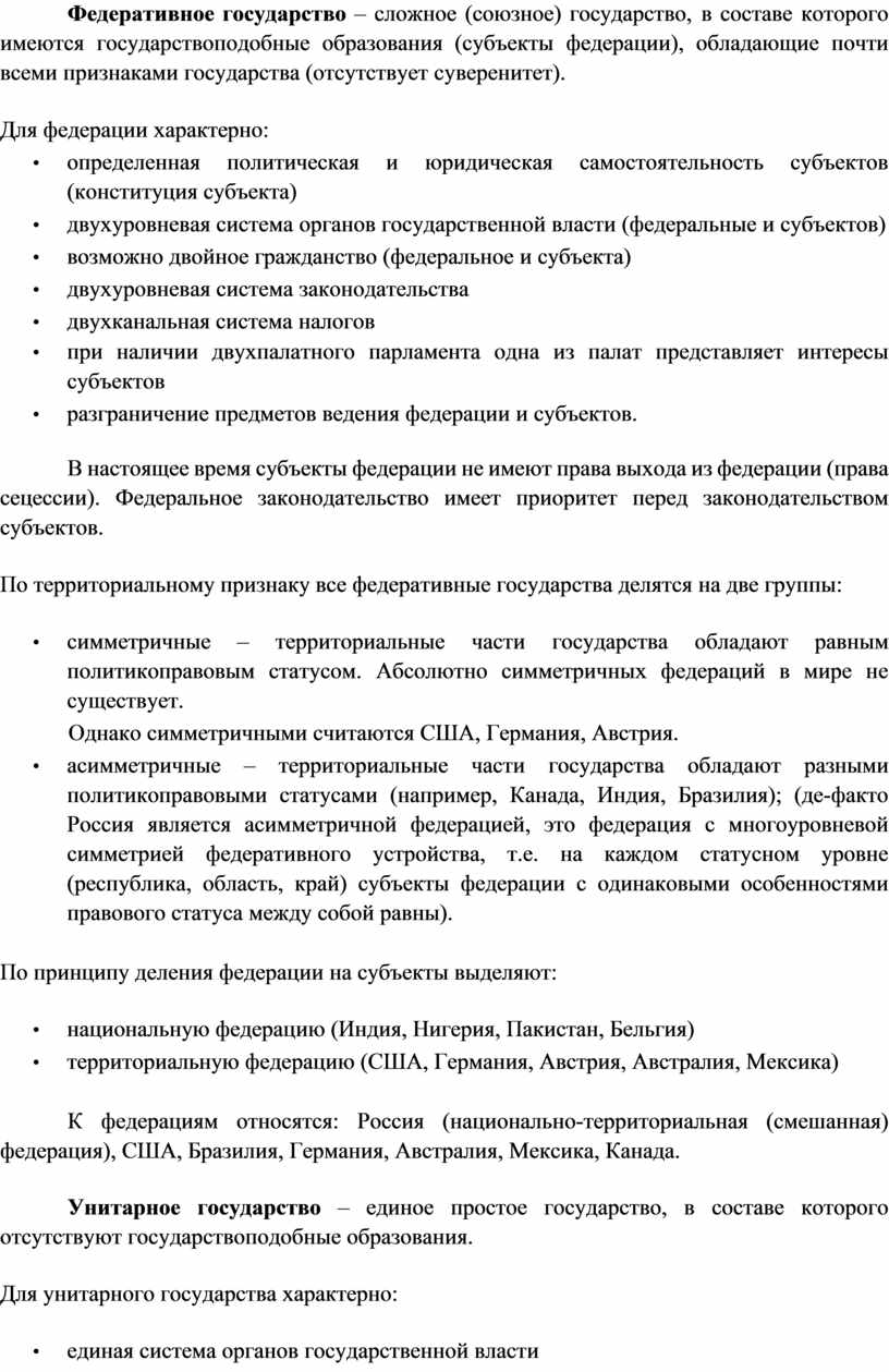 o наличие института гражданства. Гражданство – устойчивая политикоправовая связь лица с государством, выражающаяся в их взаимных правах, обязанностях и ответственности.
