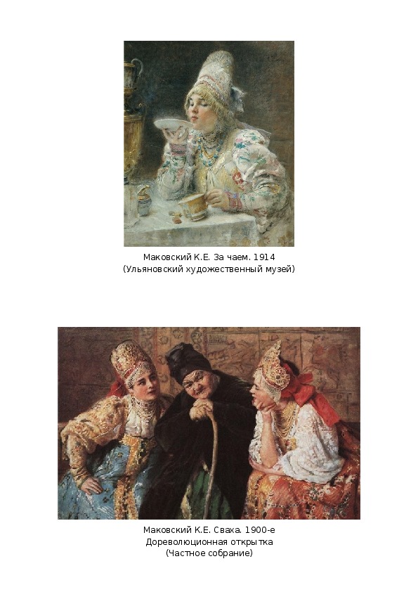 Маковский К.Е. Чарка меду. Около 1910Маковский К.Е. За чаем. 1914