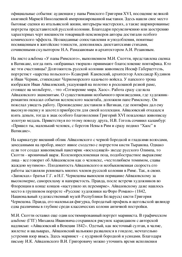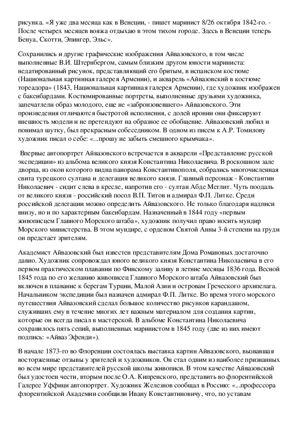 полотнах, но и о нем самом. В ноябре 1842 года И.К. Айвазовский получил письмо от