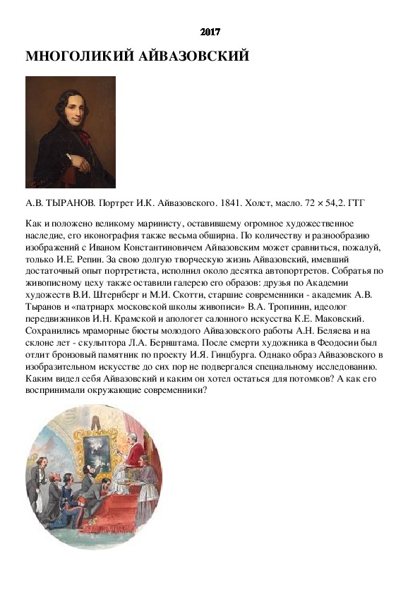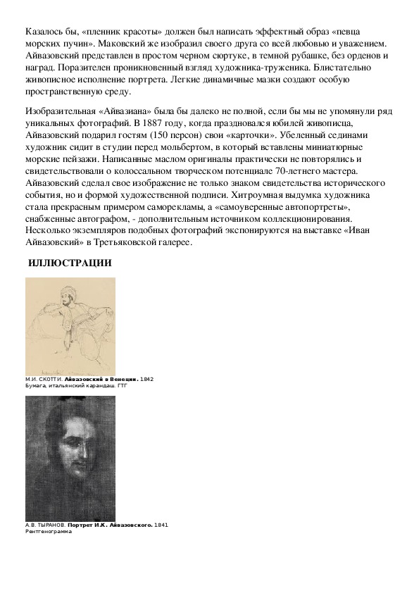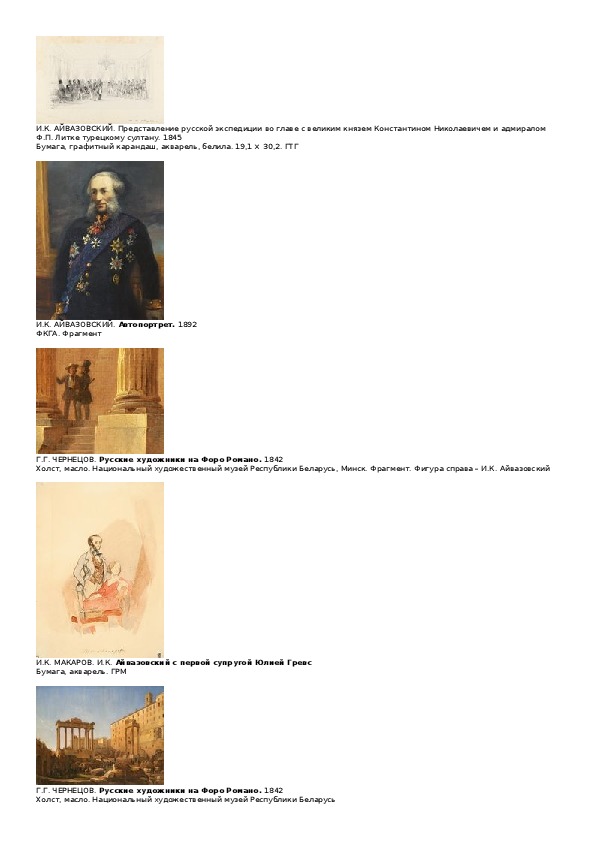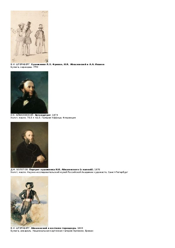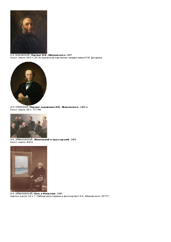 ряд своих произведений, среди них еще один поясной портрет И.К. Айвазовского