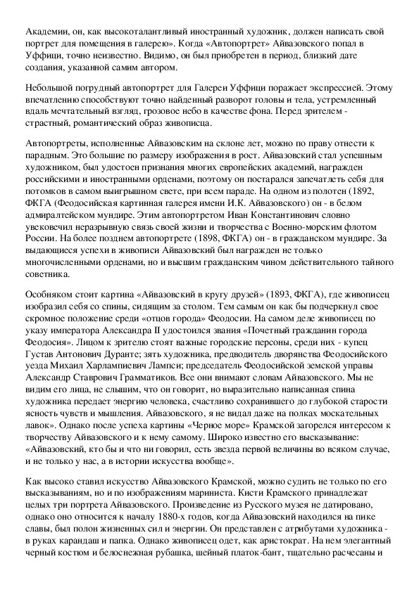 Все это говорит о том, что Айвазовский занял определенное место в российском