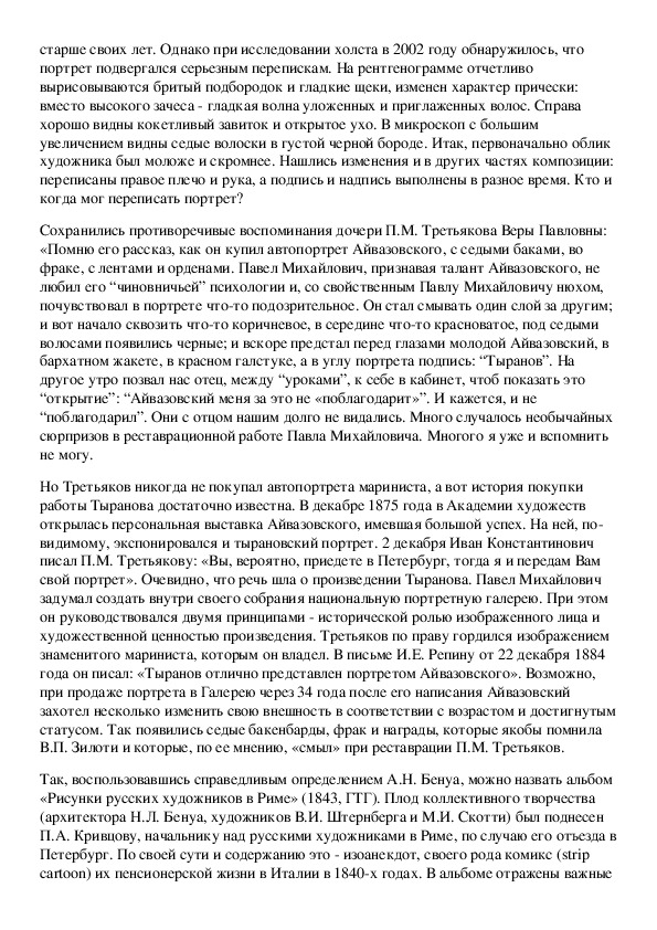 Тырановым». Видимо, удачный портрет кисти Тыранова понравился Айвазовскому, и