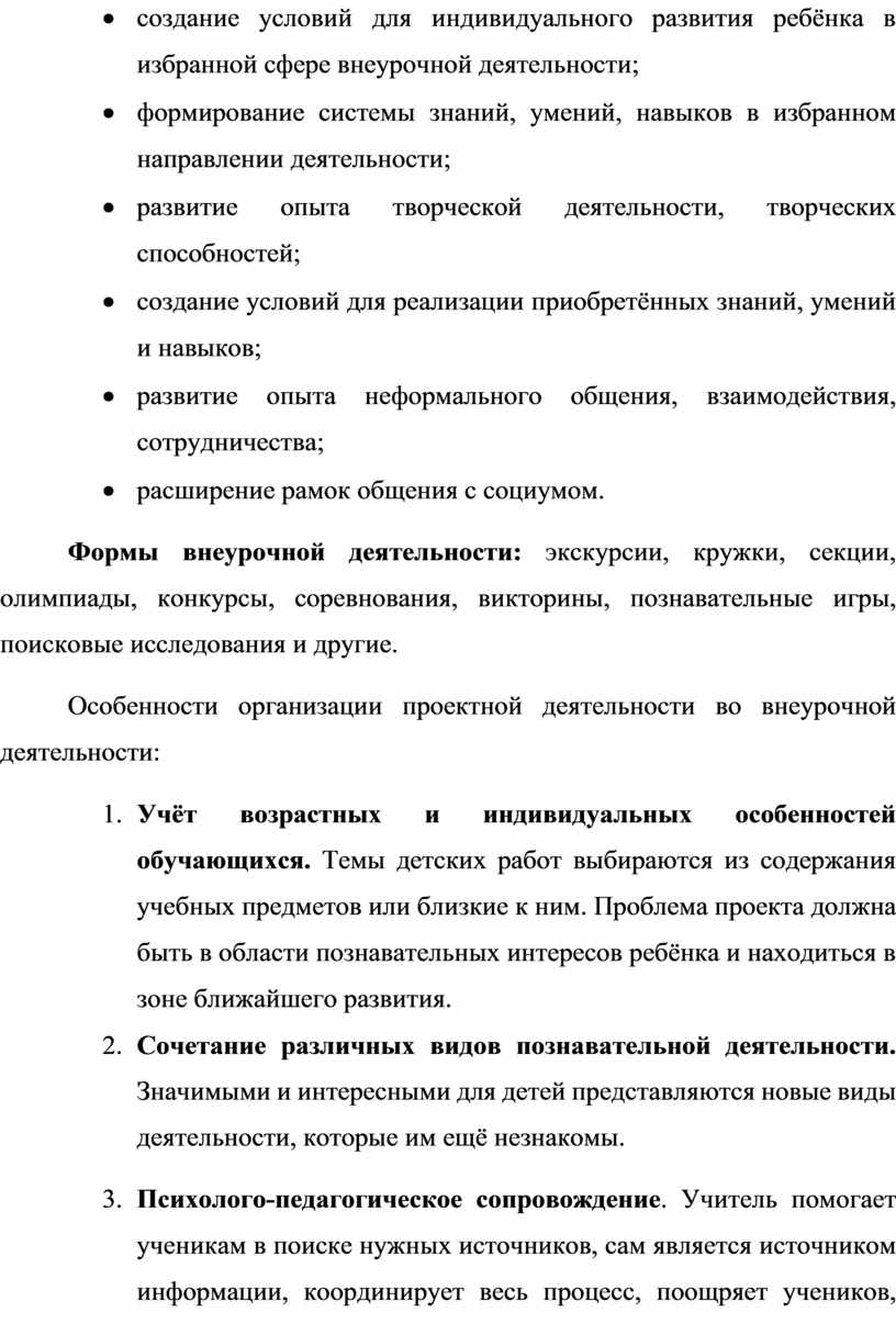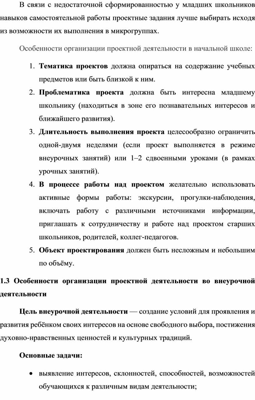 1.3 Особенности организации проектной деятельности во внеурочной деятельности