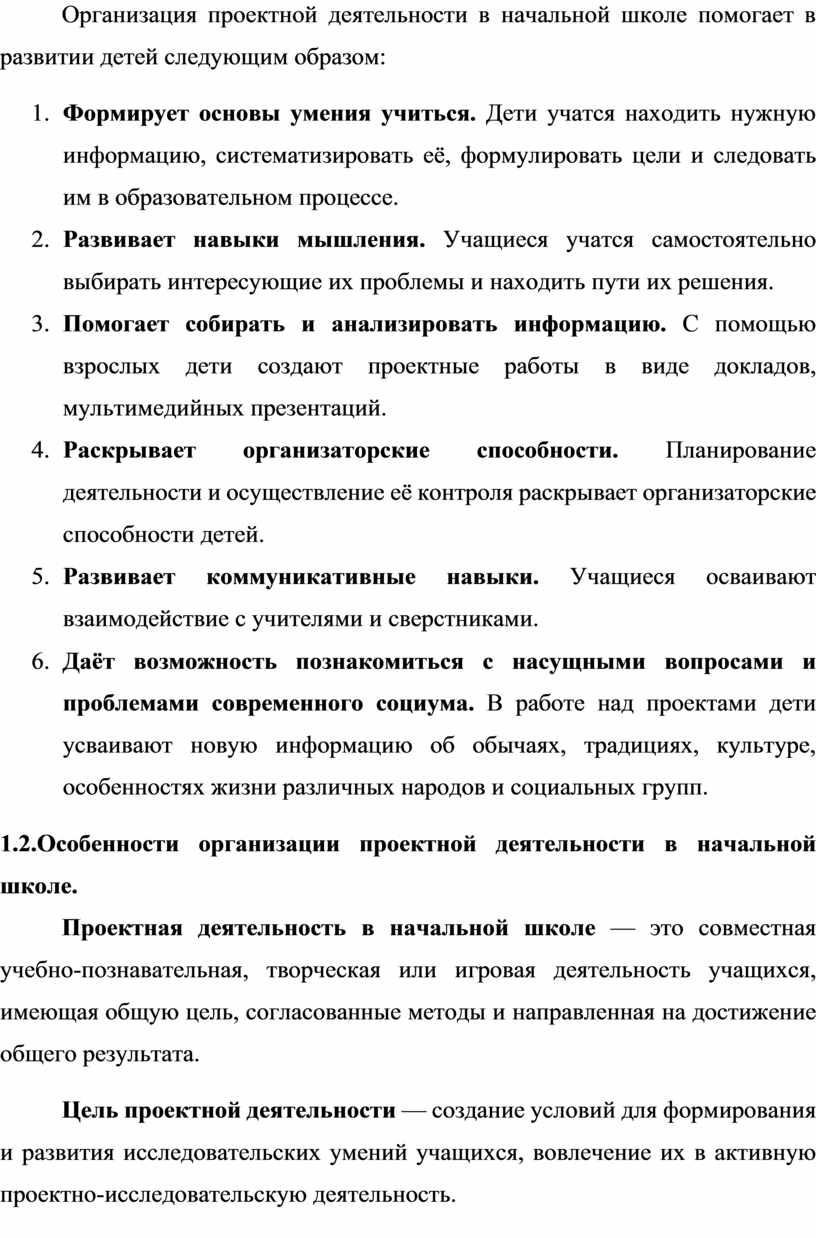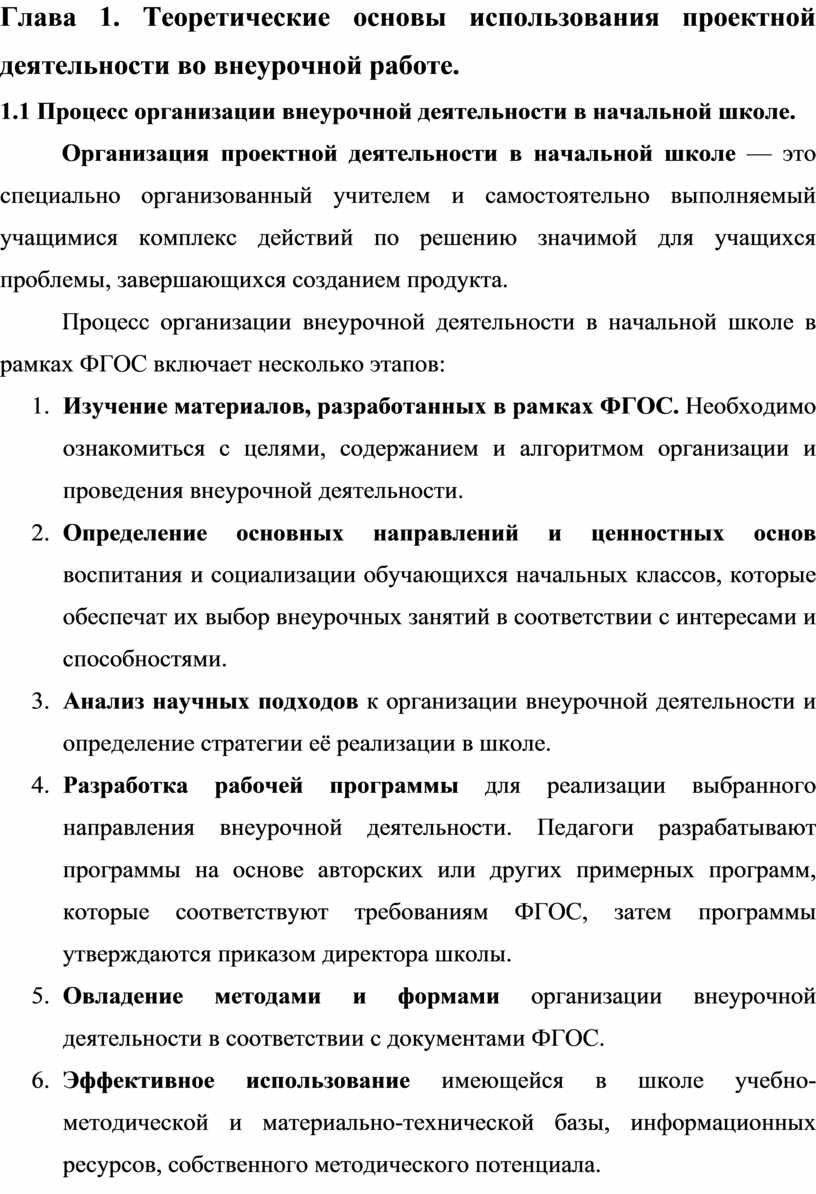 Глава 1. Теоретические основы использования проектной деятельности во внеурочной работе