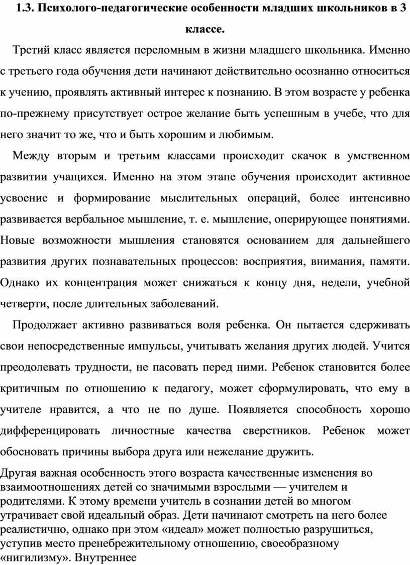 1.3. Психолого-педагогические особенности младших школьников в 3 классе ………………………………………………………………………….. |