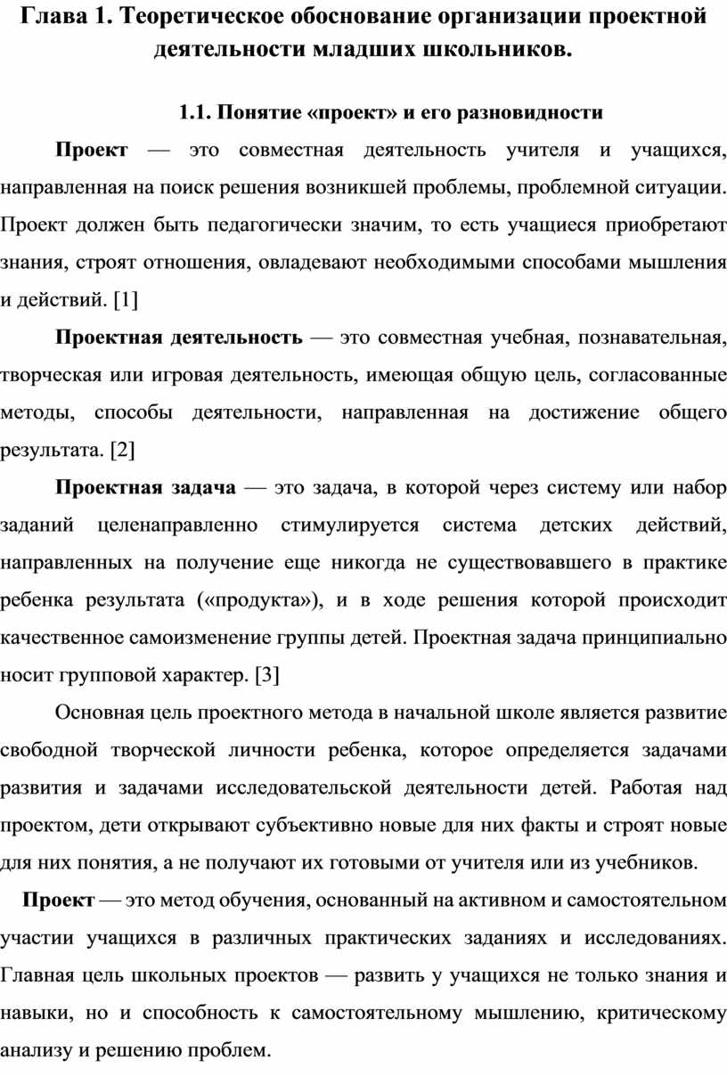 Глава 1. Теоретическое обоснование организации проектной деятельности младших школьников. |