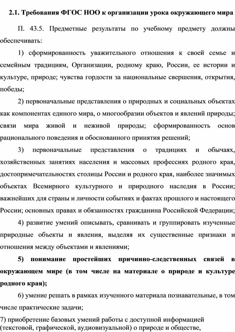 2.1. Требования ФГОС НОО к организации урока окружающего мира