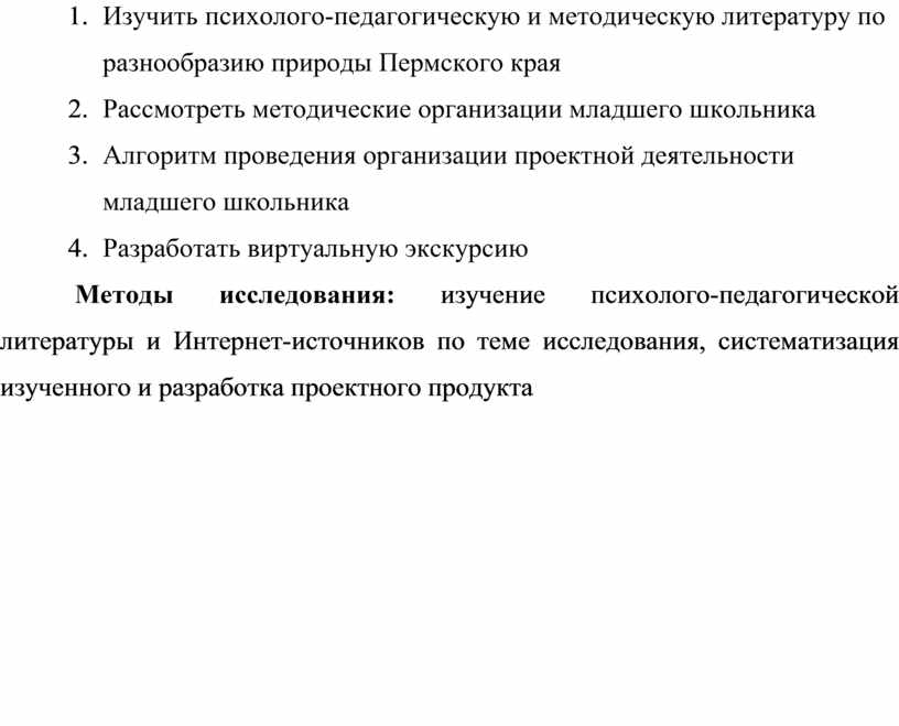 1. Изучить психолого-педагогическую и методическую литературу по разнообразию природы Пермского края