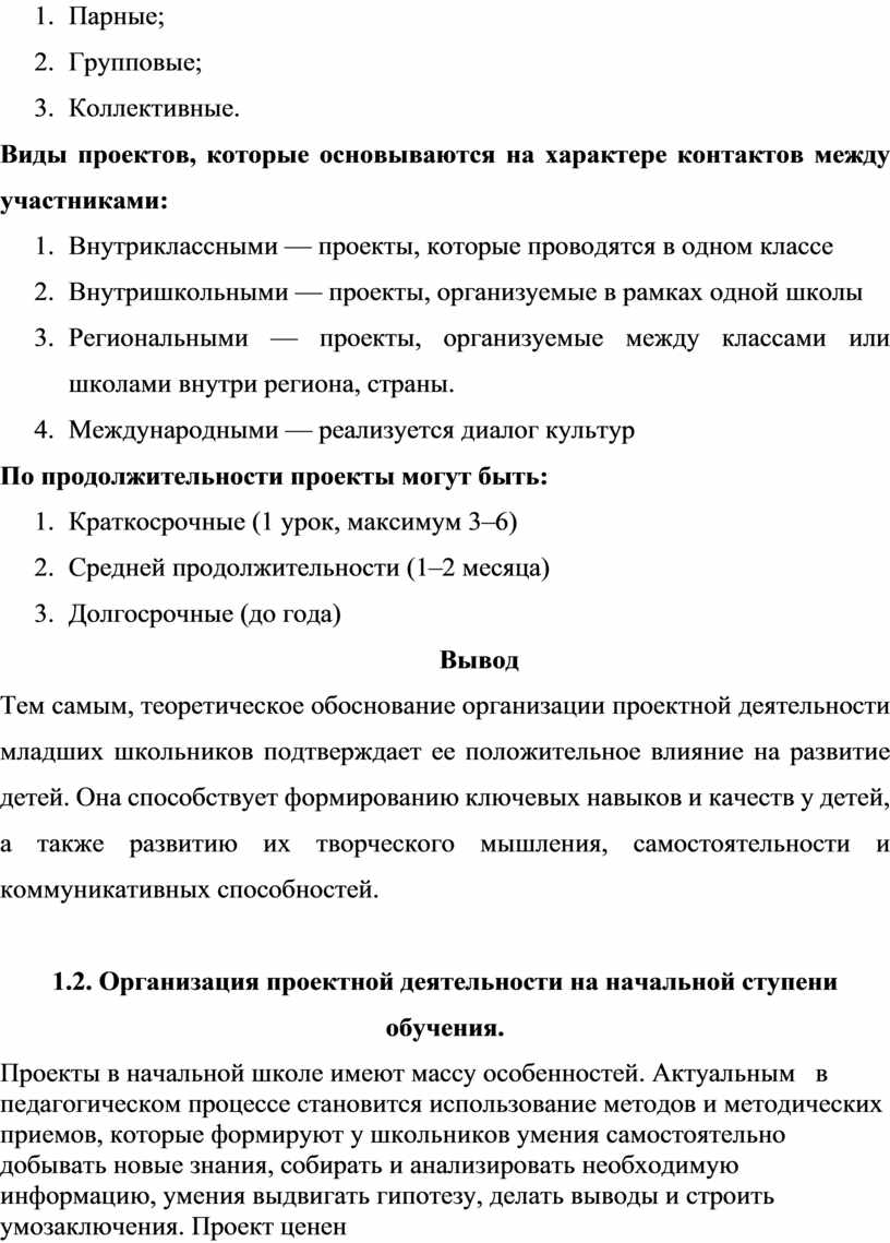 Глава 1. Теоретическое обоснование организации проектной деятельности младших школьников.