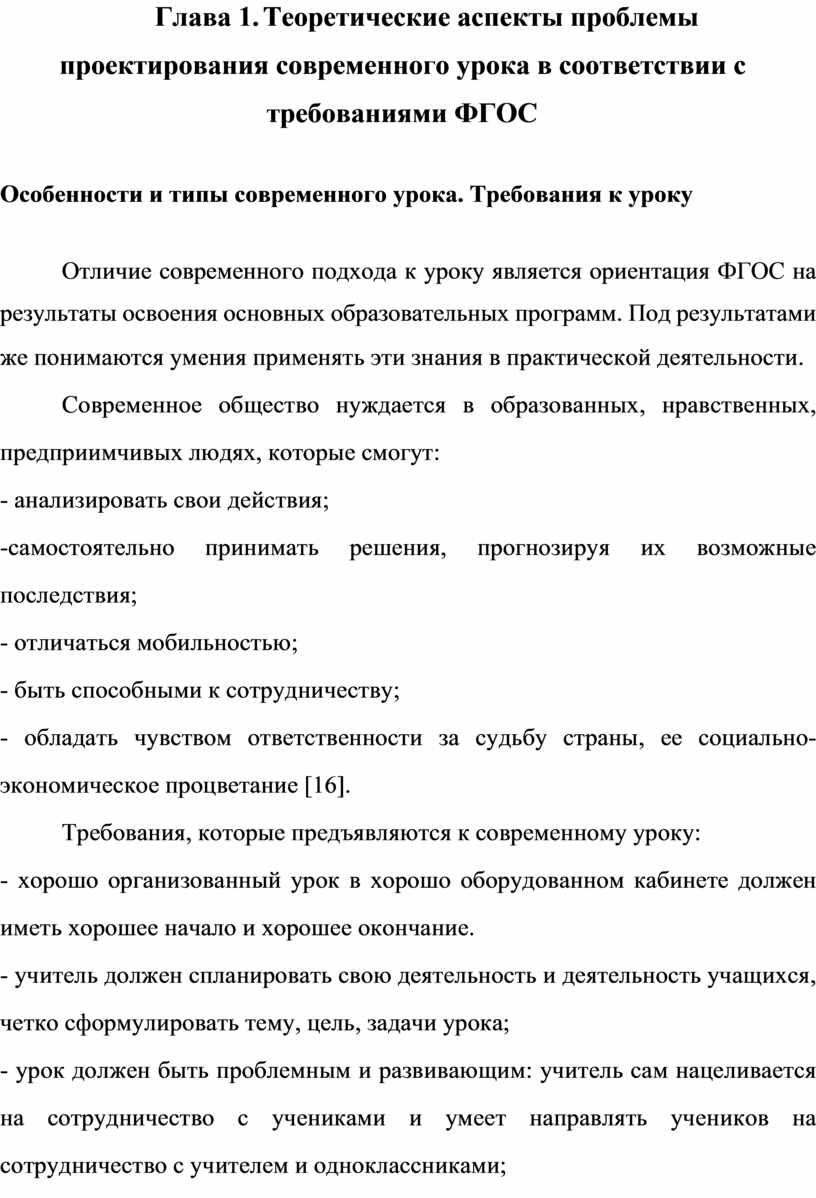 Глава 1. Теоретические аспекты проблемы проектирования современного урока в соответствии с требованиями ФГОС