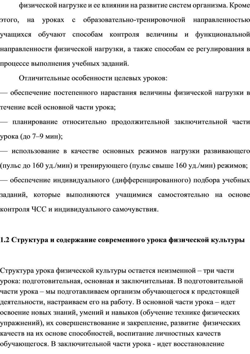 1.2 Ст ру кт ур а и со де рж ан ие со вр ем ен но го ур ок а фи зи че ск ой ку ль ту ры