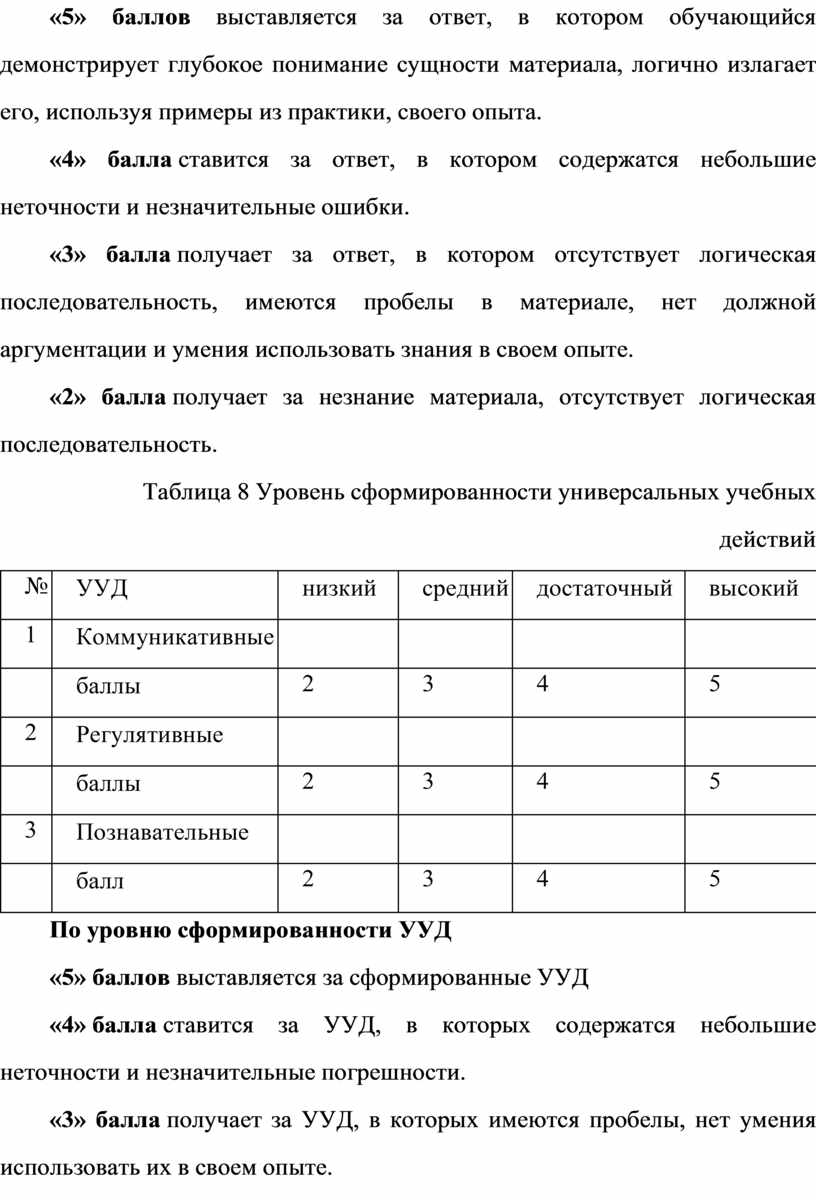 «5» ба лл ов вы ст ав ля ет ся за сф ор ми ро ва нн ые УУ Д