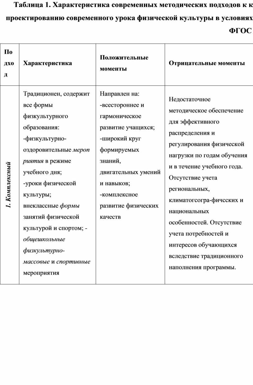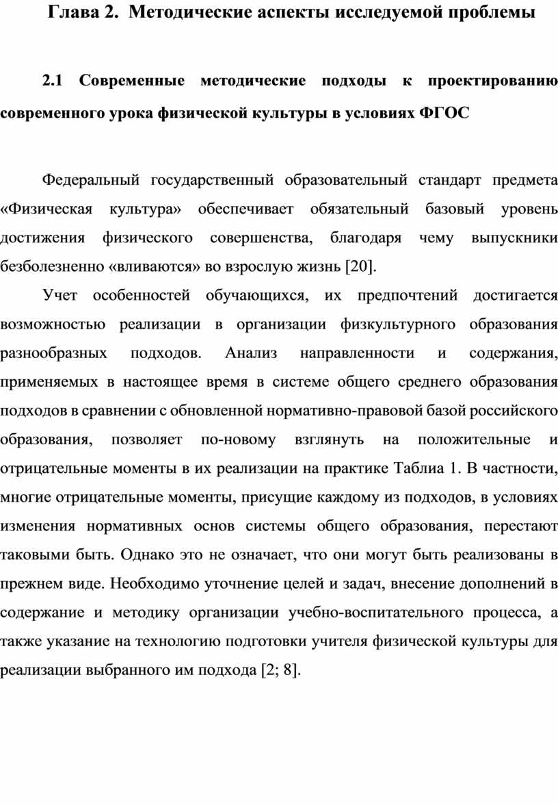 2. Проанализировать современные методические подходы к проектированию современного урока физической культуры в условиях ФГОС;