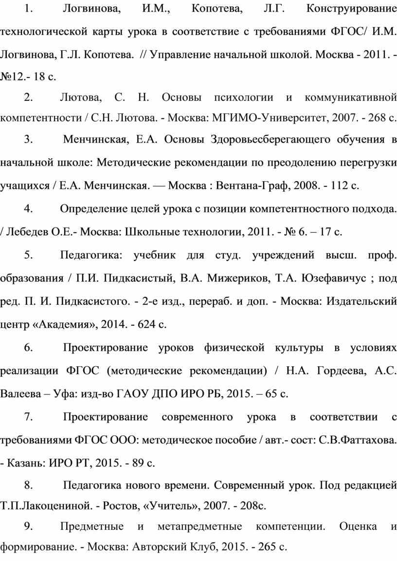 17. Ло гв ин ов а, И.М., Ко по те ва, Л.Г. Ко нс тр уи ро ва ни е те хн ол ог ич ес ко й ка рт ы ур ок а в со от ве тс тв ие с тр еб ов ан ия ми ФГ ОС/ И.М. Логвинова, Г.Л. Копотева. // Уп ра вл ен ие на ча ль но й шк ол ой . Москва - 2011. - №12.- 18 с.