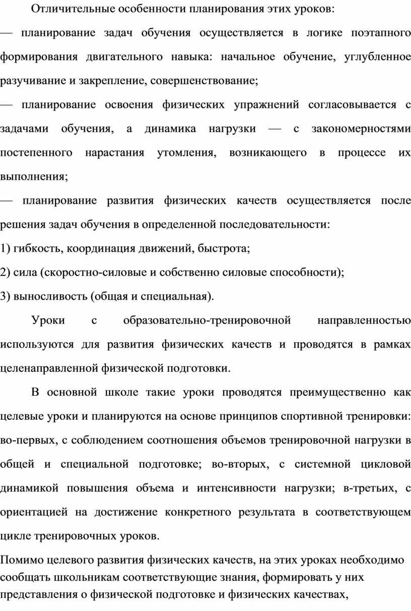 Ур ок и с об ра зо ва те ль но -тр ен ир ов оч но й на пр ав ле нн ос ть ю ис по ль зу ют ся дл я ра зв ит ия фи зи че ск их ка че ст в и пр ов од ят ся в ра мк ах це ле на пр ав ле нн ой фи зи че ск ой по дг от ов ки .