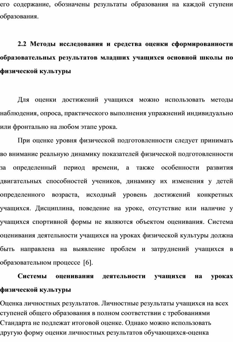 2.2 Методы исследования и средства оценки сформированности образовательных результатов младших учащихся основной школы по физической культуре …………………………………… |