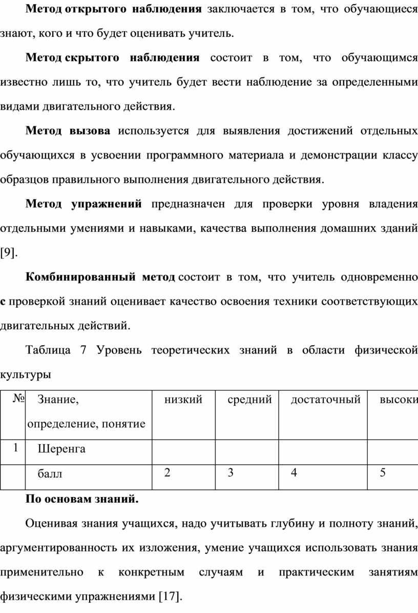 Оц ен ив ая зн ан ия уч ащ их ся , на до уч ит ыв ат ь гл уб ин у и по лн от у зн ан ий , ар гу ме нт ир ов ан но ст ь их из ло же ни я, ум ен ие уч ащ их ся ис по ль зо ва ть зн ан ия пр им ен ит ел ьн о к ко нк ре тн ым сл уч ая м и пр ак ти че ск им за ня ти ям фи зи че ск им и уп ра жн ен ия ми [17] .