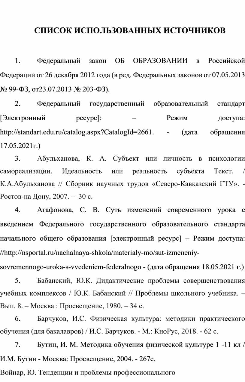 2. Фе де ра ль ны й го су да рс тв ен ны й об ра зо ва те ль ны й ст ан да рт [Эл ек тр он ны й ре су рс ]: – Режим доступа: ht tp ://st an da rt .ed u.ru /ca ta lo g.as px ?Ca ta lo gI d=2661. - (да та об ра ще ни я 17.05.2021г.)