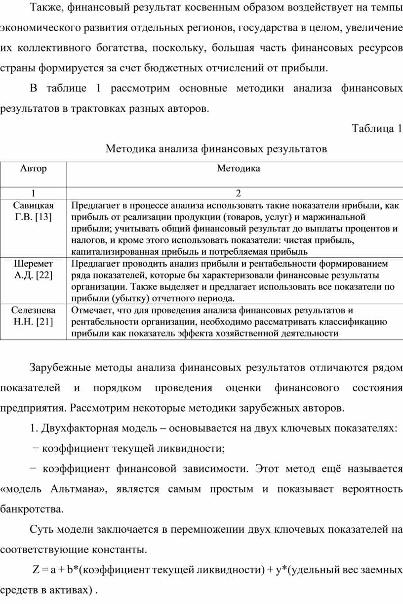 В таблице 1 рассмотрим основные методики анализа финансовых результатов в трактовках разных авторов.