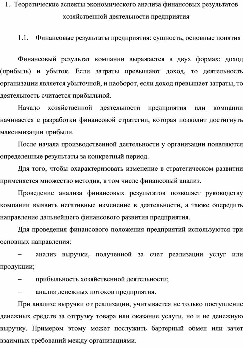 1. Теоретические аспекты экономического анализа финансовых результатов хозяйственной деятельности предприятия
