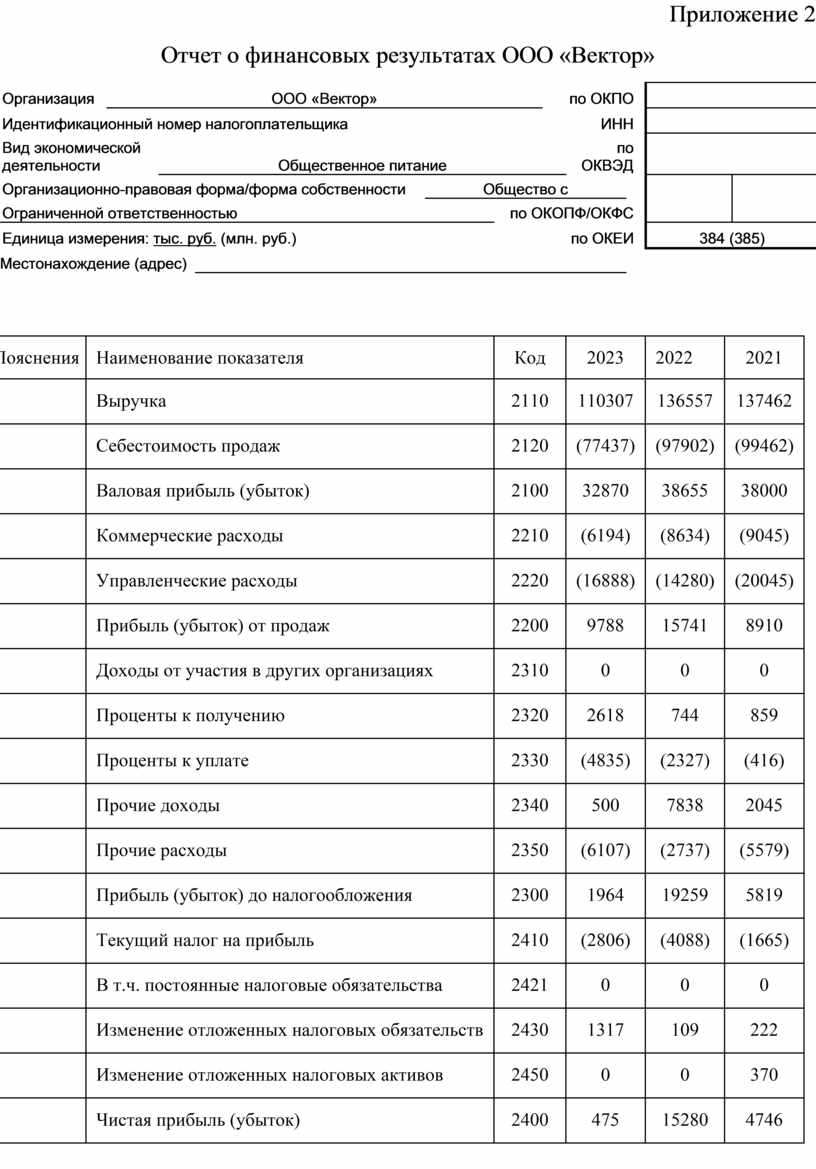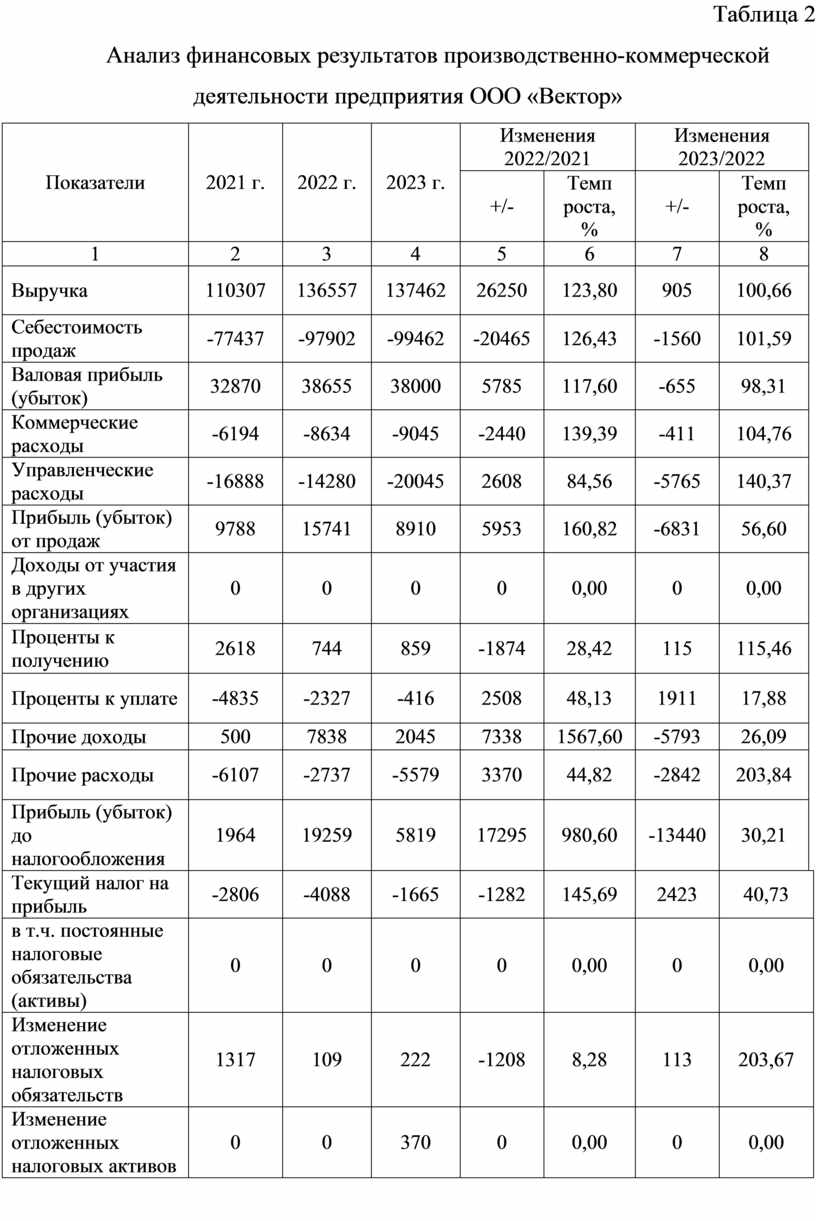 2. Анализ финансовых результатов хозяйственной деятельности предприятия ООО «Вектор»