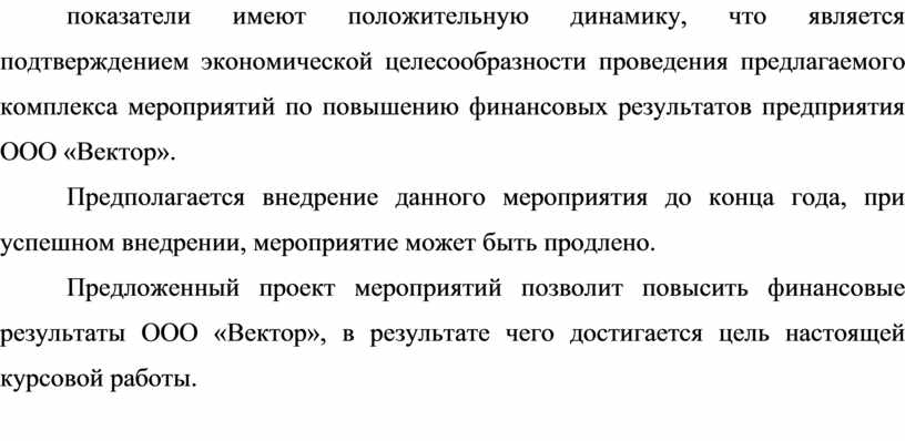 ¾ Разработать мероприятия по повышению финансовых результатов ООО ««Вектор»».