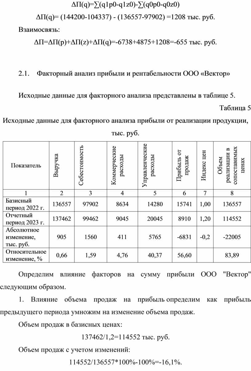 2.3. Факторный анализ прибыли и рентабельности ООО «Вектор»…….... 29