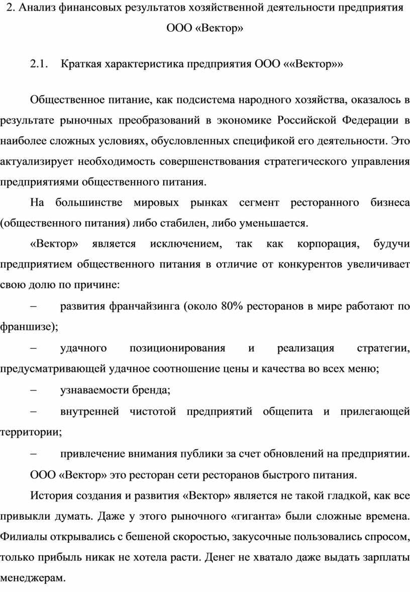 2. Анализ финансовых результатов хозяйственной деятельности предприятия ООО «Вектор»......................................................................................................... 13
