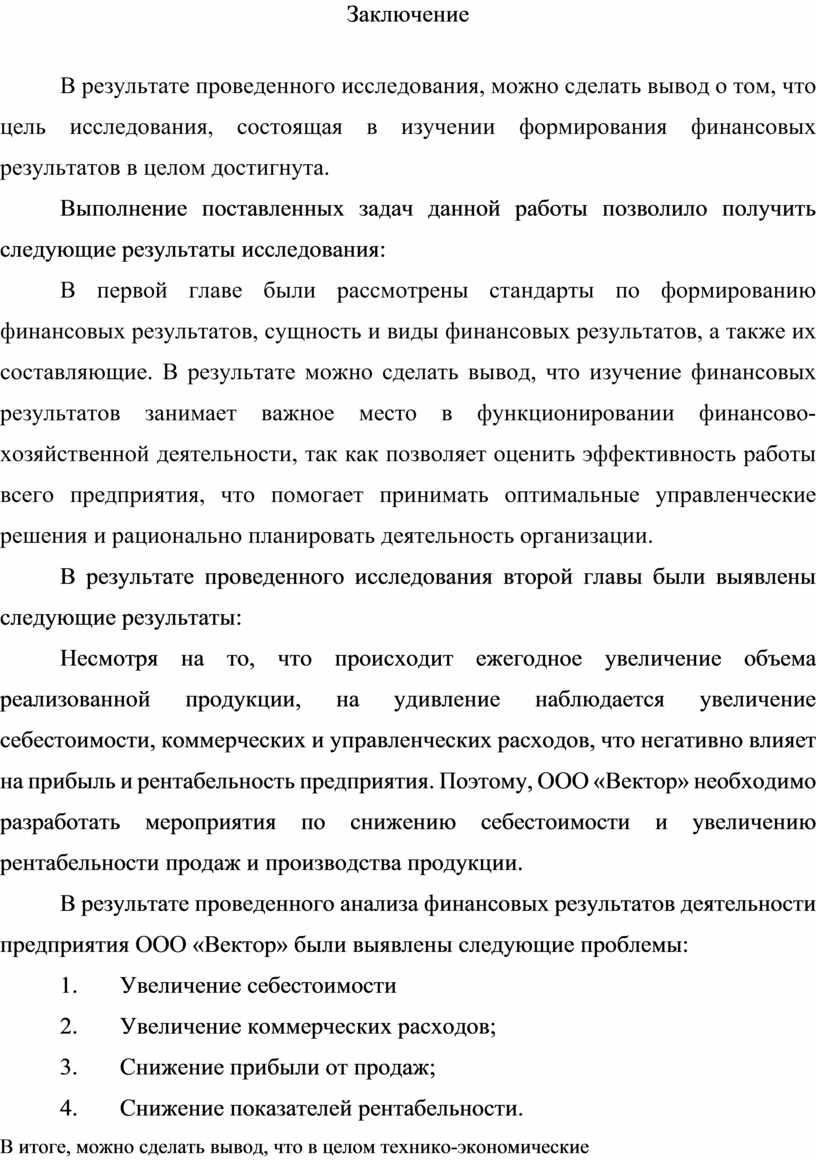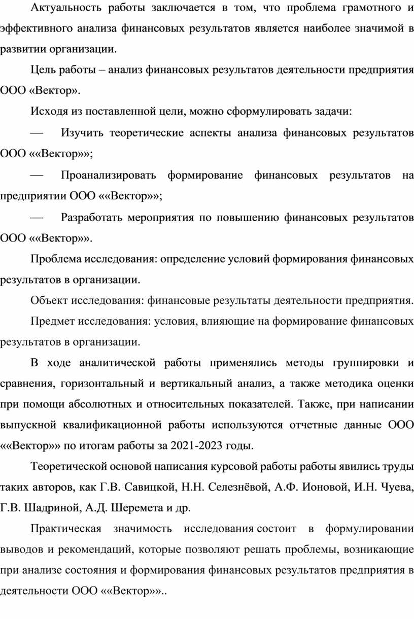 Практическая значимость исследования состоит в формулировании выводов и рекомендаций, которые позволяют решать проблемы, возникающие при анализе состояния и формирования финансовых результатов предприятия в деятельности ООО ««Вектор»»..