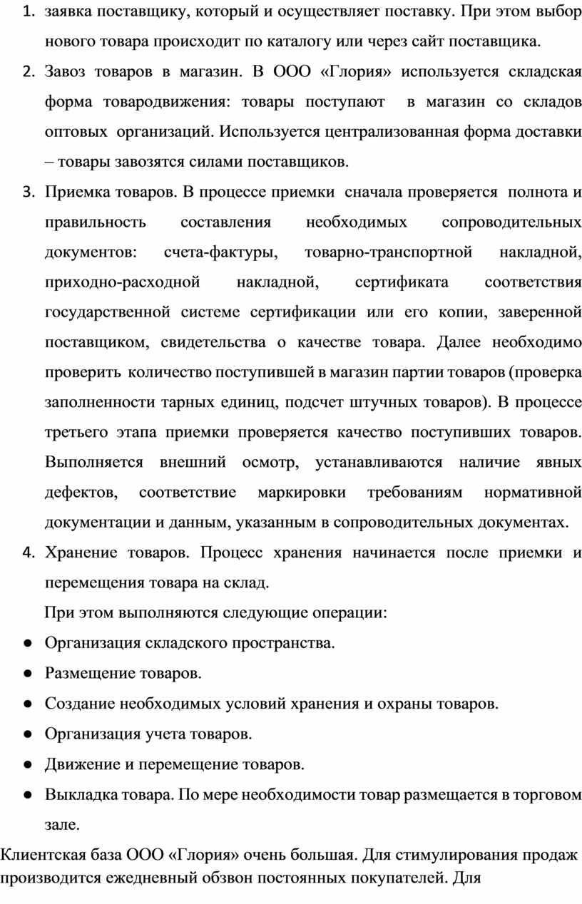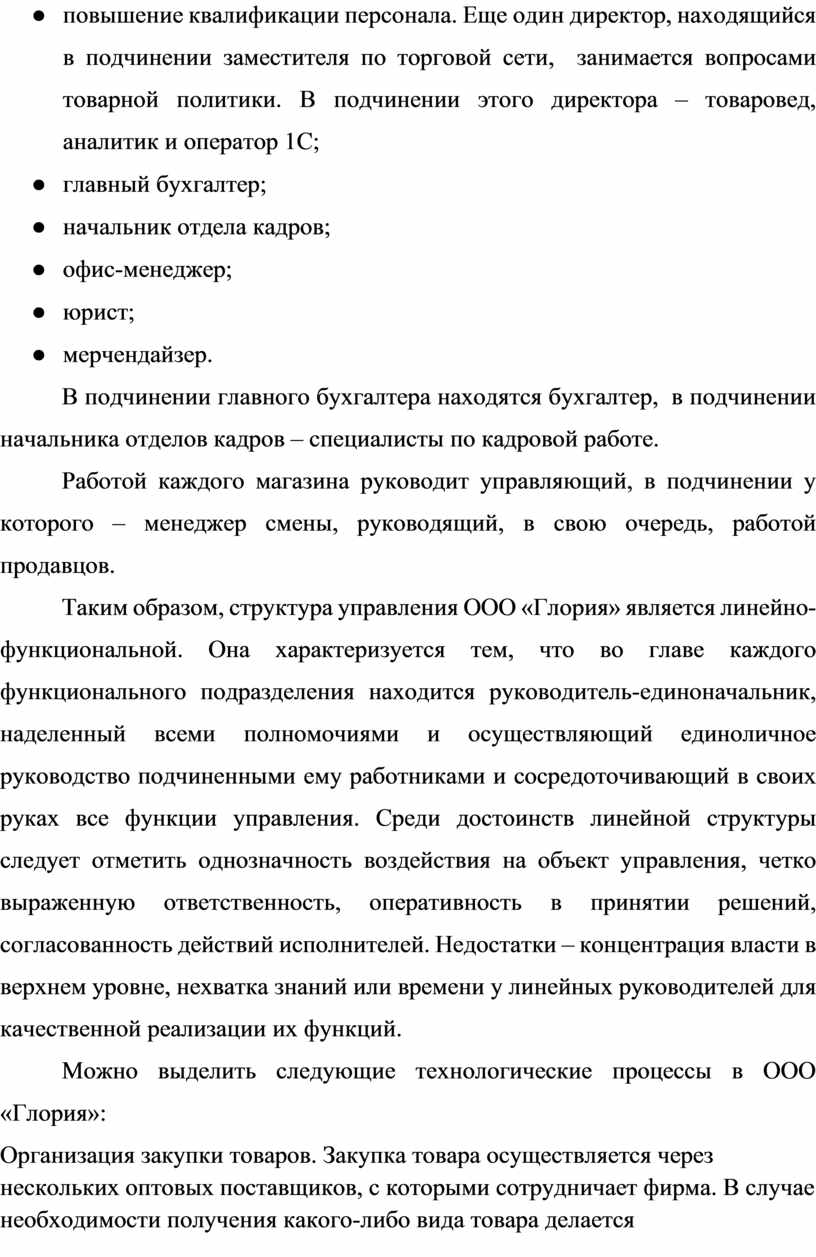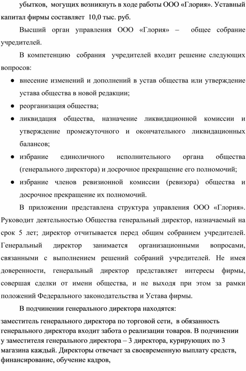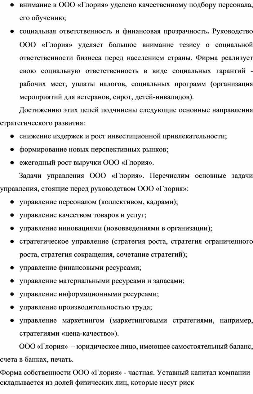 2.1 Краткая характеристика ООО «Глория»........................................ |