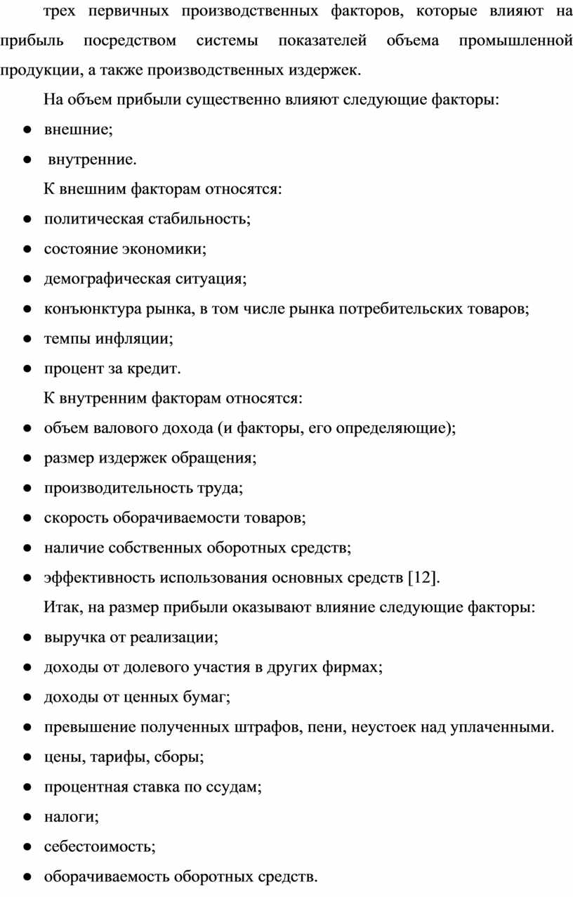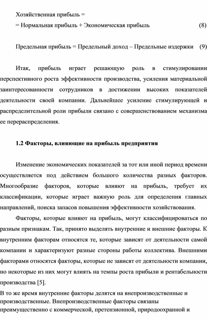 1.2 Факторы, влияющие на прибыль предприятия ........................................ |