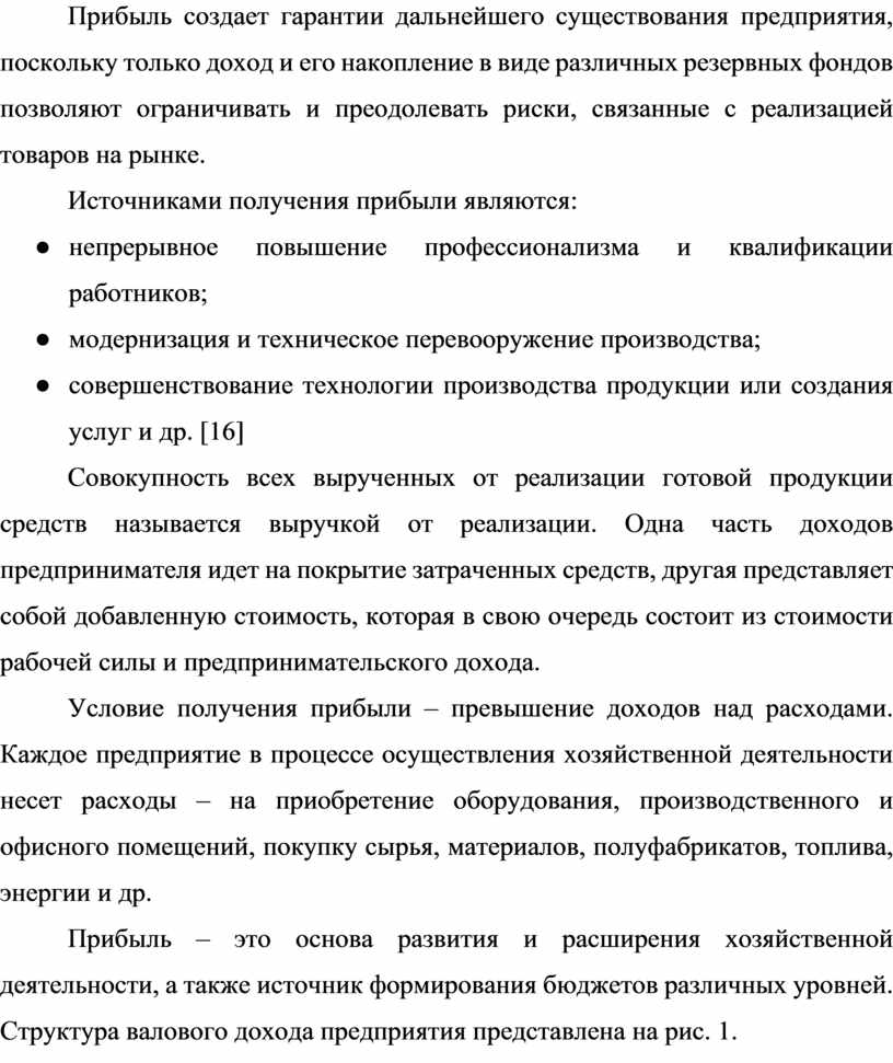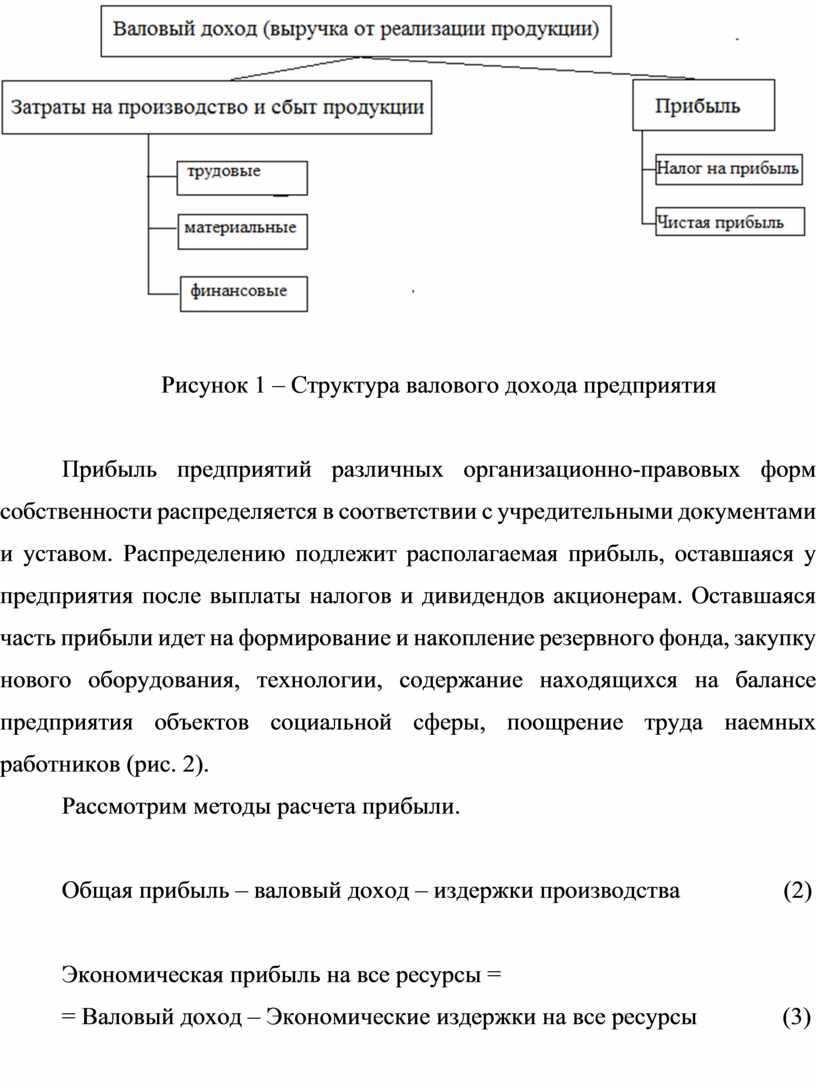 Прибыль – это основа развития и расширения хозяйственной деятельности, а также источник формирования бюджетов различных уровней. Структура валового дохода предприятия представлена на рис. 1.