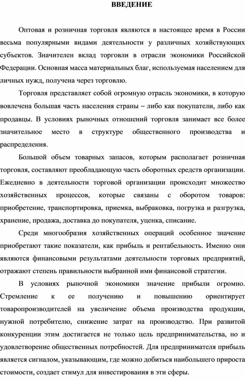Таким образом, показатели прибыли и рентабельности очень важны для оценки эффективности деятельности торговых предприятий – изучение их весьма необходимо. Именно поэтому тема настоящей работы актуальна.