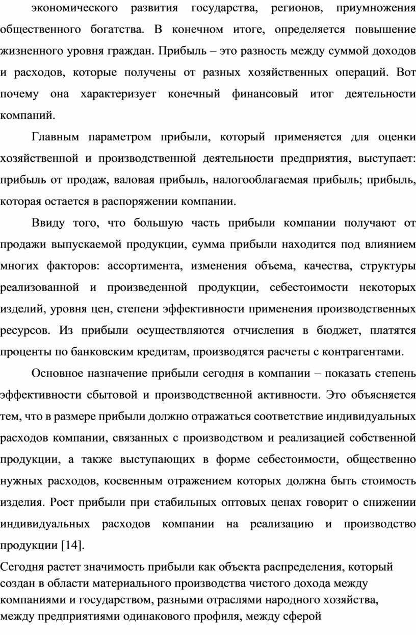 Основное назначение прибыли сегодня в компании – показать степень эффективности сбытовой и производственной активности. Это объясняется тем, что в размере прибыли должно отражаться соответствие индивидуальных расходов компании, связанных с производством и реализацией собственной продукции, а также выступающих в форме себестоимости, общественно нужных расходов, косвенным отражением которых должна быть стоимость изделия. Рост прибыли при стабильных оптовых ценах говорит о снижении индивидуальных расходов компании на реализацию и производство продукции [14].