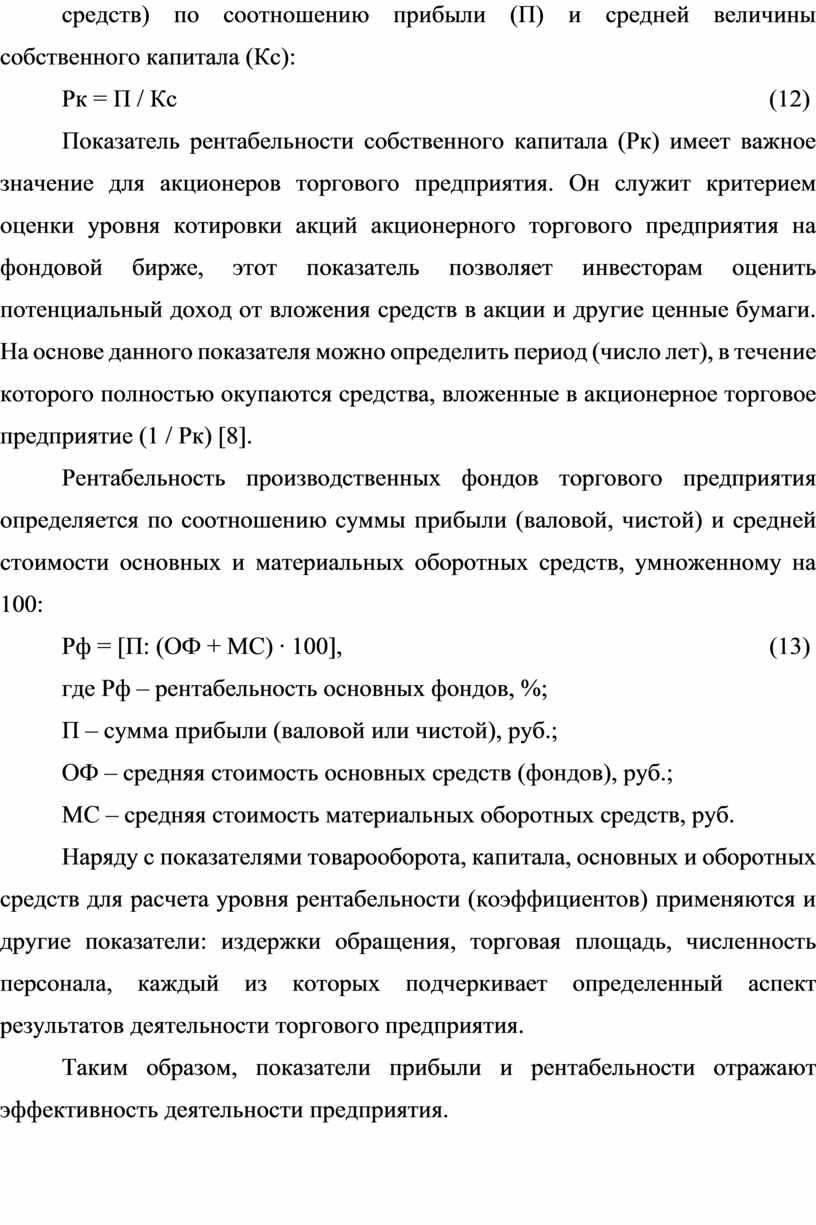 В настоящей работе были рассмотрены особенности формирования показателей прибыли и рентабельности торговых предприятий.