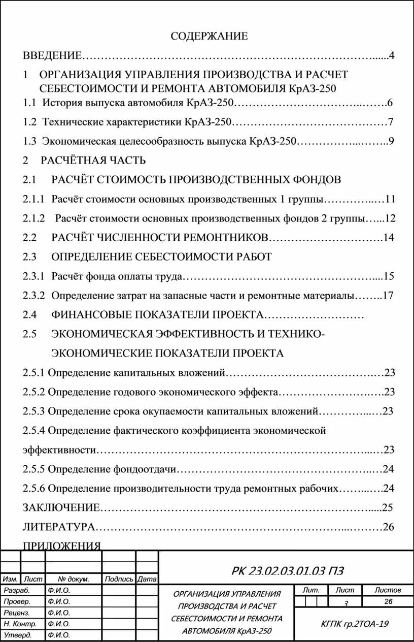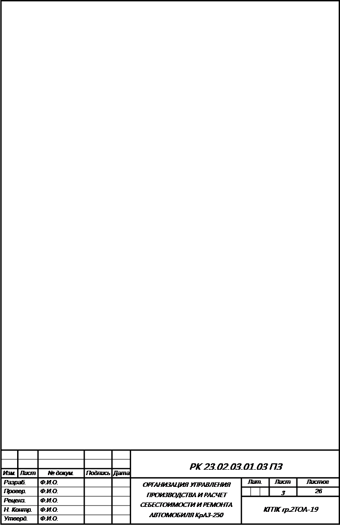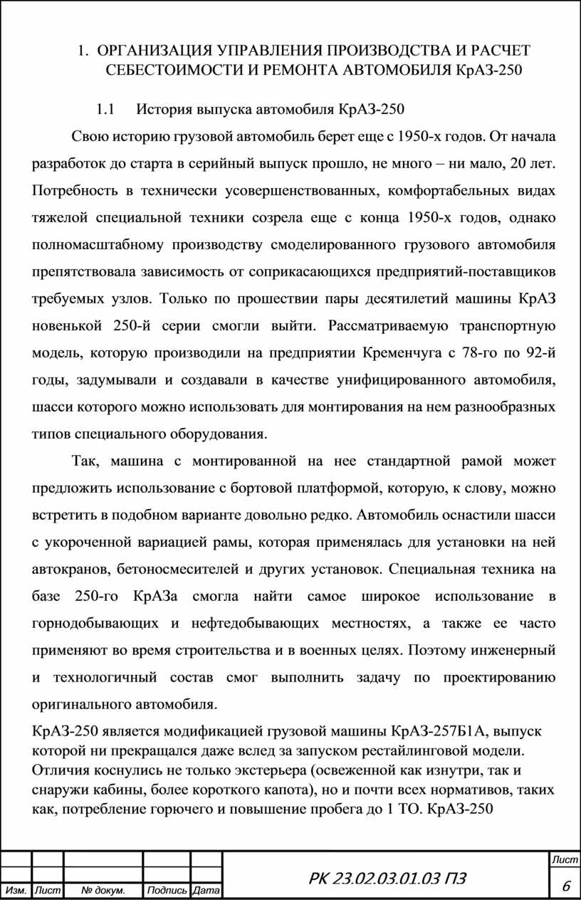 1 ОРГАНИЗАЦИЯ УПРАВЛЕНИЯ ПРОИЗВОДСТВА И РАСЧЕТ СЕБЕСТОИМОСТИ И РЕМОНТА АВТОМОБИЛЯ КрАЗ-250