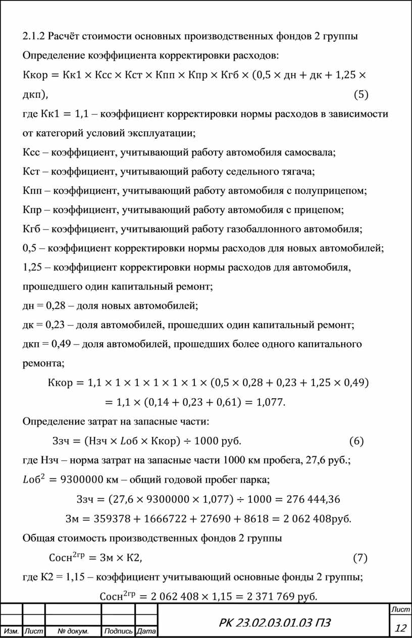2.1.2 Расчёт стоимости основных производственных фондов 2 группы…...12