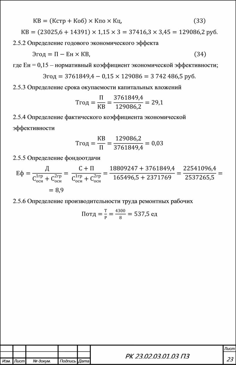 2.5.4 Определение фактического коэффициента экономической эффективности