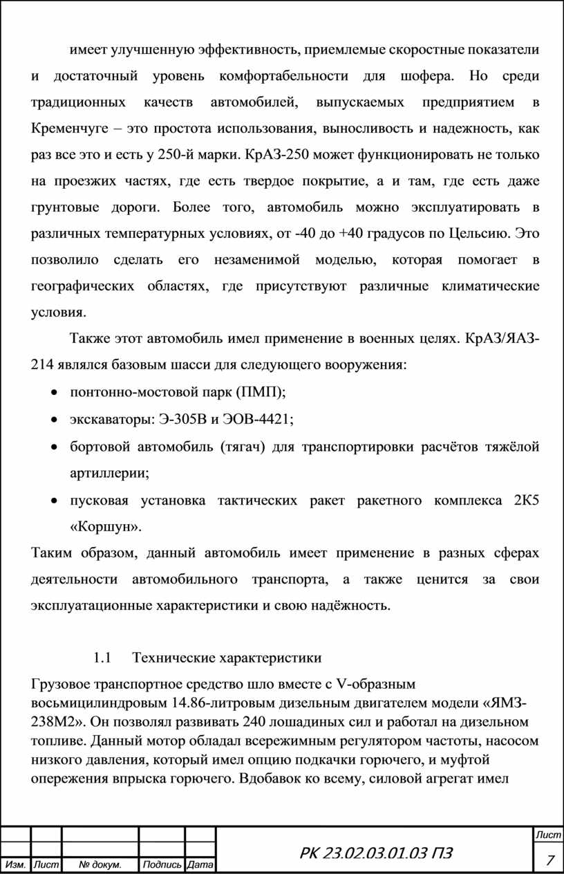 1.2 Технические характеристики КрАЗ-250……………………………………7
