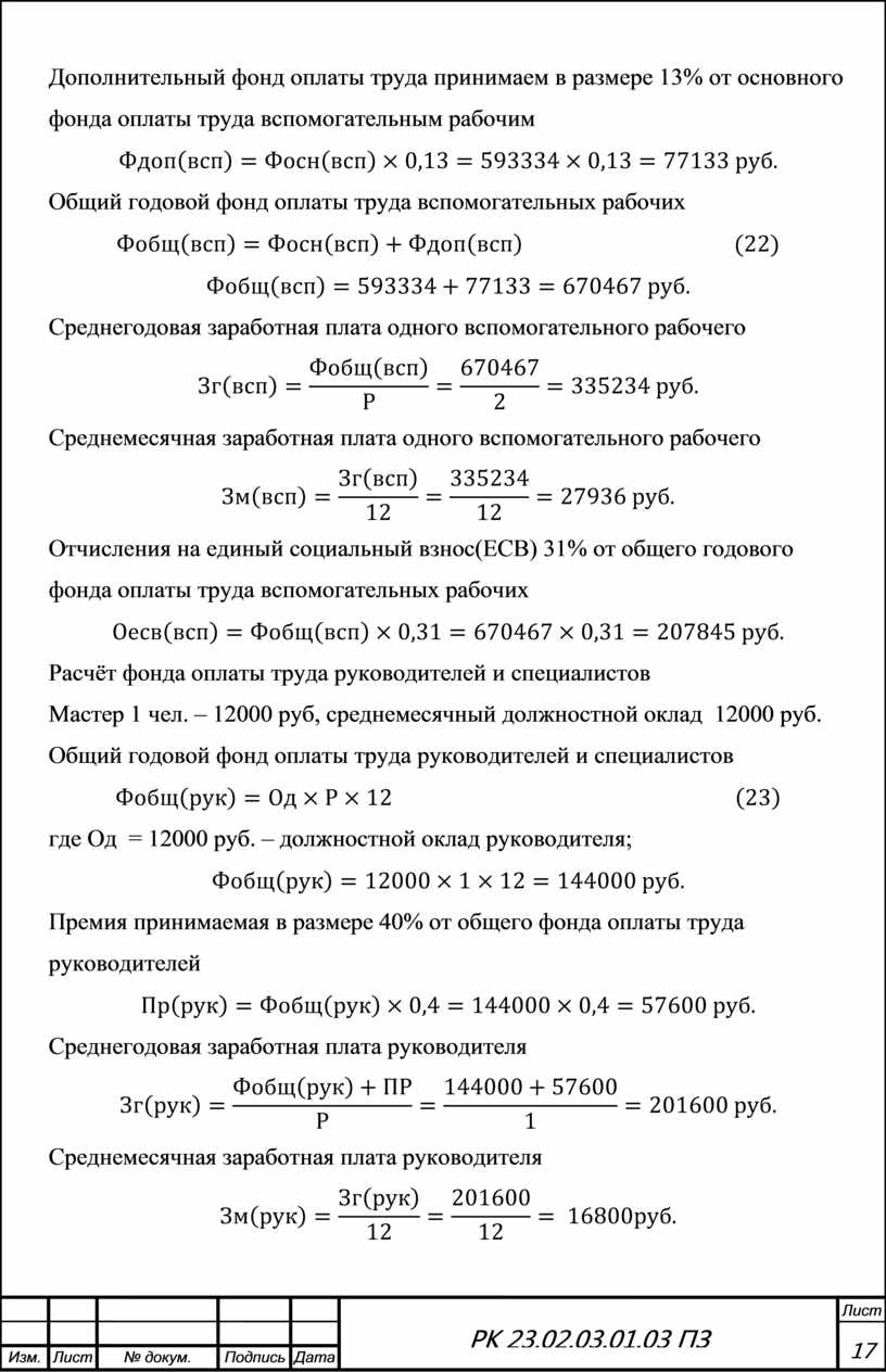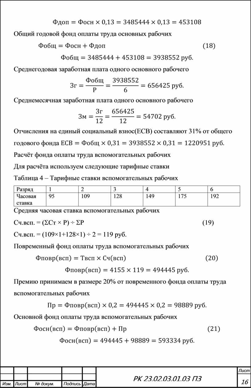 2.3.1 Расчёт фонда оплаты труда……………………………………………....15