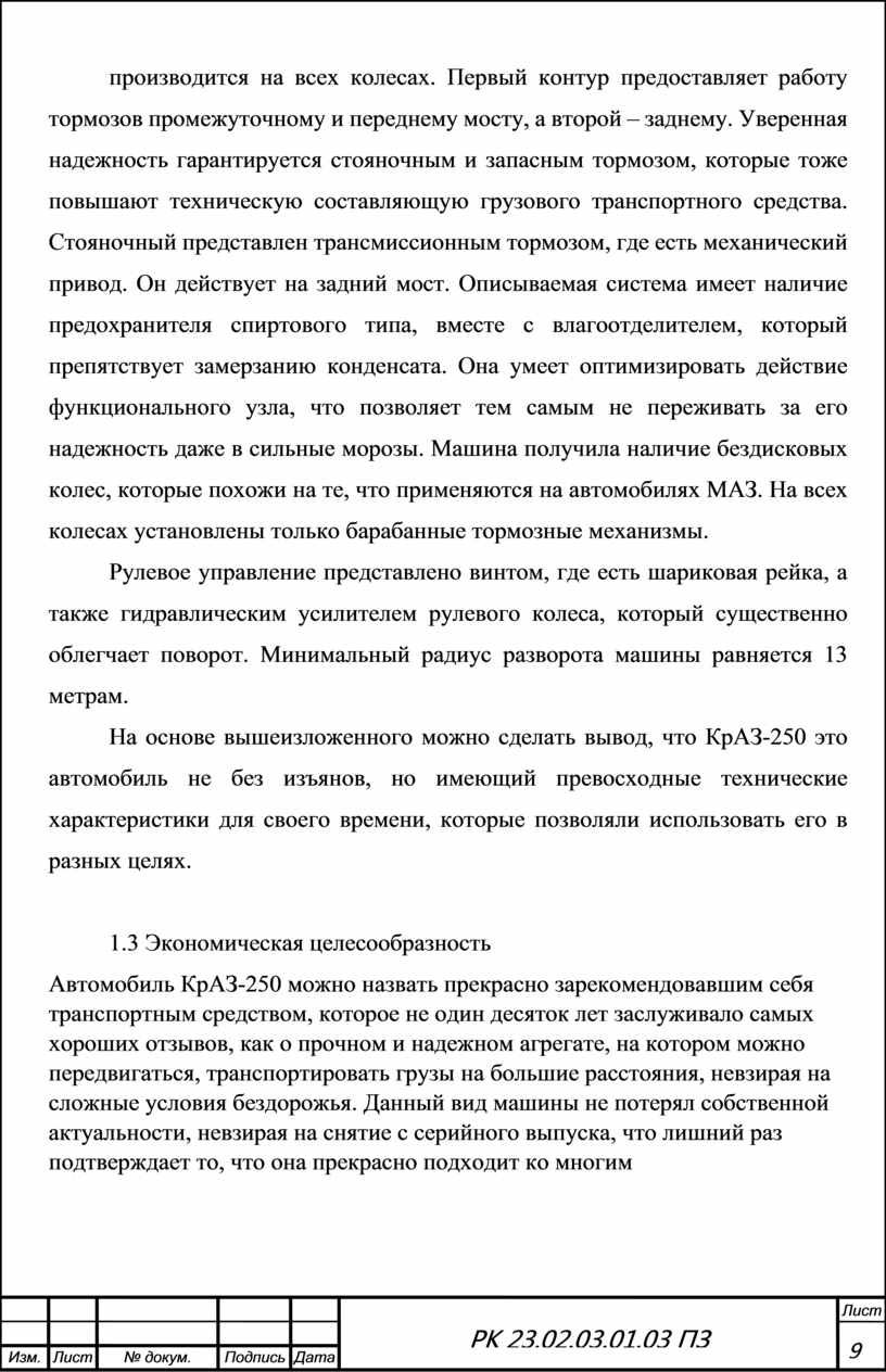 1.3 Экономическая целесообразность выпуска КрАЗ-250……………...……..9